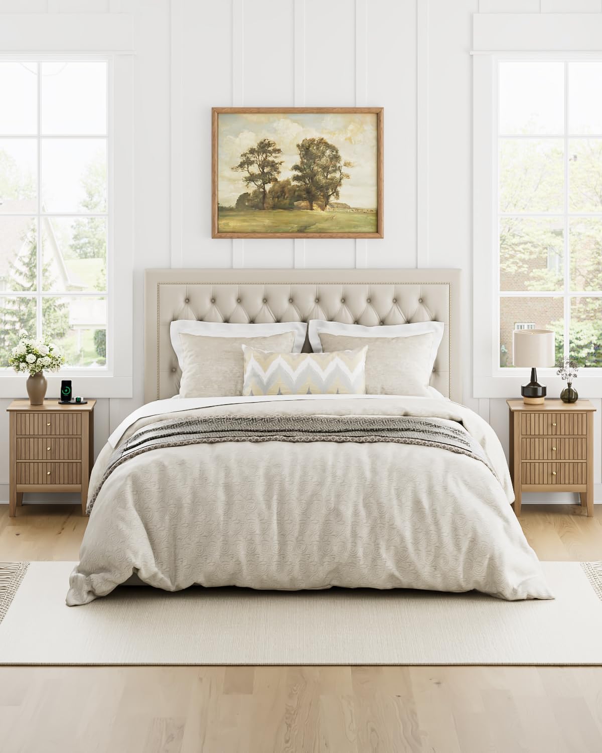 Apetaccat Fluted Nightstand, Farmhouse Night Stand with 3 Drawers, Mid Century Modern Side Accent Table,Bedside End Table for Bedroom, Living Room, Natural