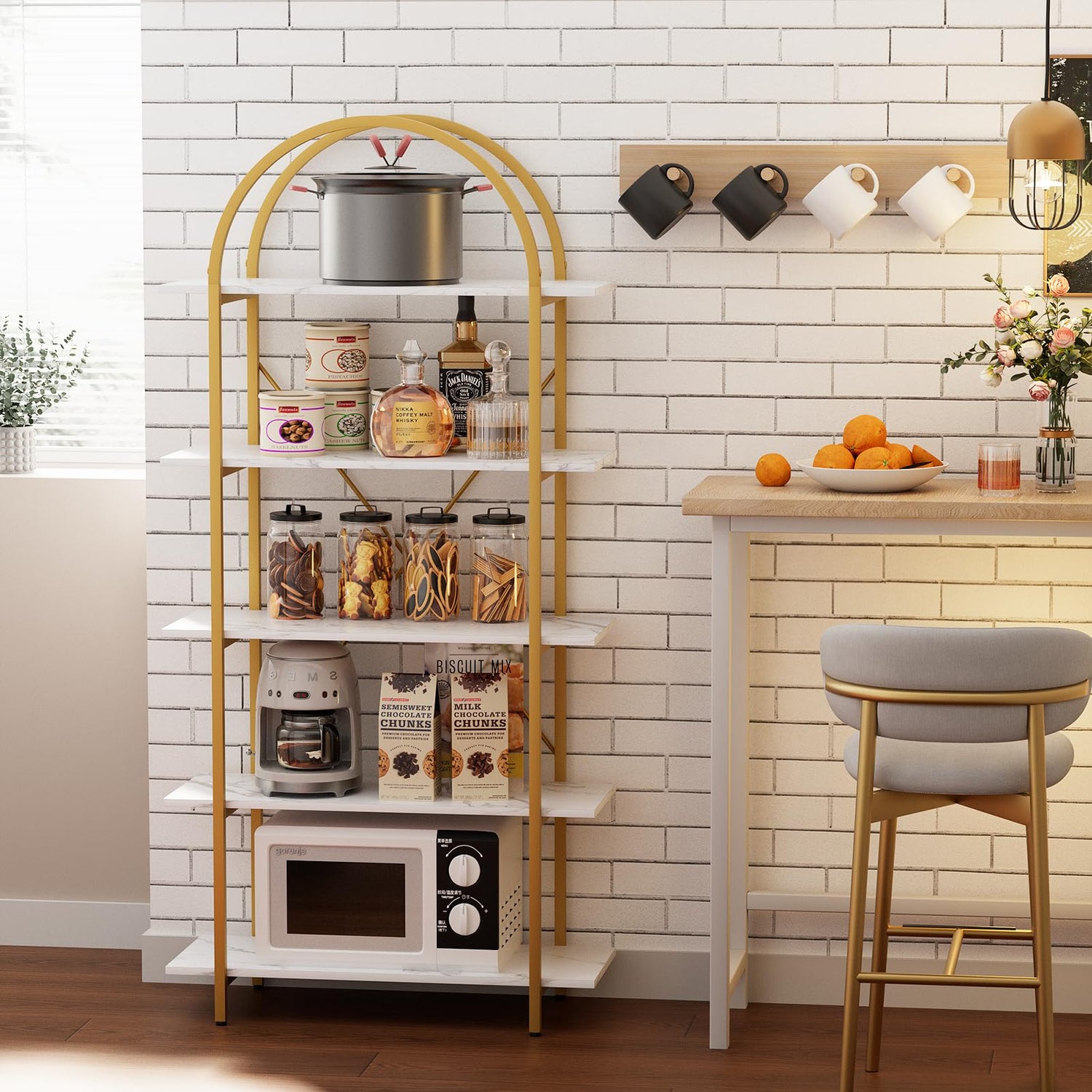 Arbuxzuy Arched Bookshelf 5 Tier Book Shelf, 31.5 Inch Width Industrial Arch Bookcase, Curved Tall Bookshelf with Open Shelves for Home Office, Living Room, Bedroom, Gold
