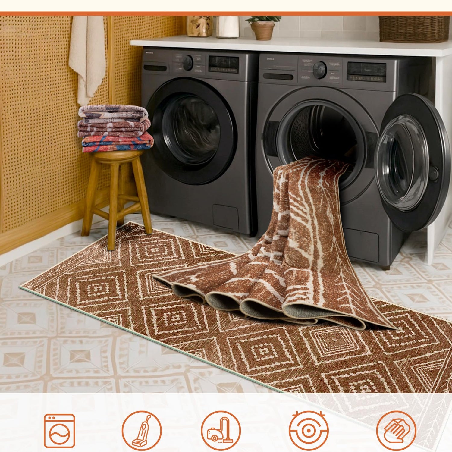 - Tribal Series and Western Style: The Rug patterns feature printed designs that blend tribal and western elements, adding a touch of vintage artistry to your home. The carpets are available in a variety of colors and sizes to suit different living spaces. They are ideal for entryways, foyers, hallways, kitchens, living rooms, dining rooms, and other high-traffic indoor areas. The carpet surface is Water Repellent, and stain-resistant, making it easy to clean.