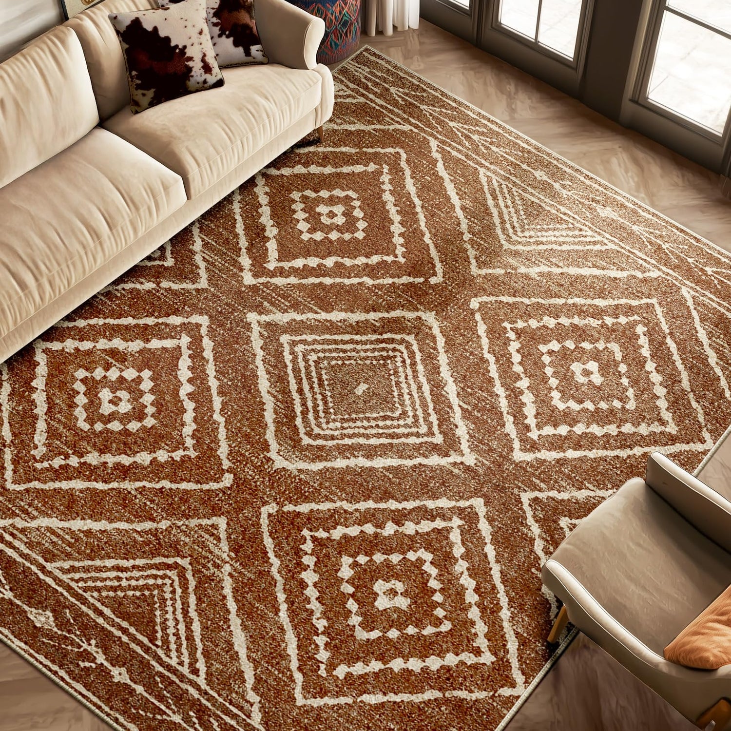 Area Rug 5x7 Rug Machine Washable Non-Slip Low Pile Print Pattern Western Rug for Living Room Bedroom Entryway Tribal Series -Yellowbrown/Cream
