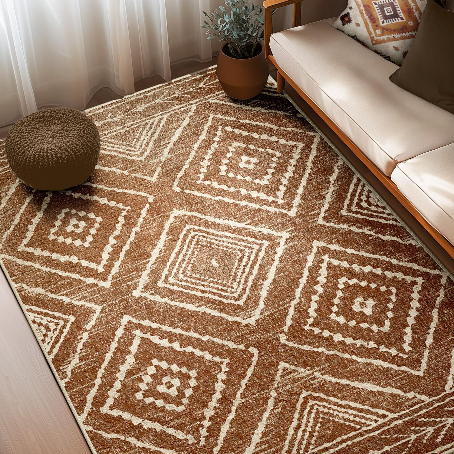- Ultra Soft: The 5x7 area rugs are made of reinforced faux wool, it is much more soft and comfortable. Machine made weave and high density stitched edge makes the rug can prevent from scratching and indoor high traffic.