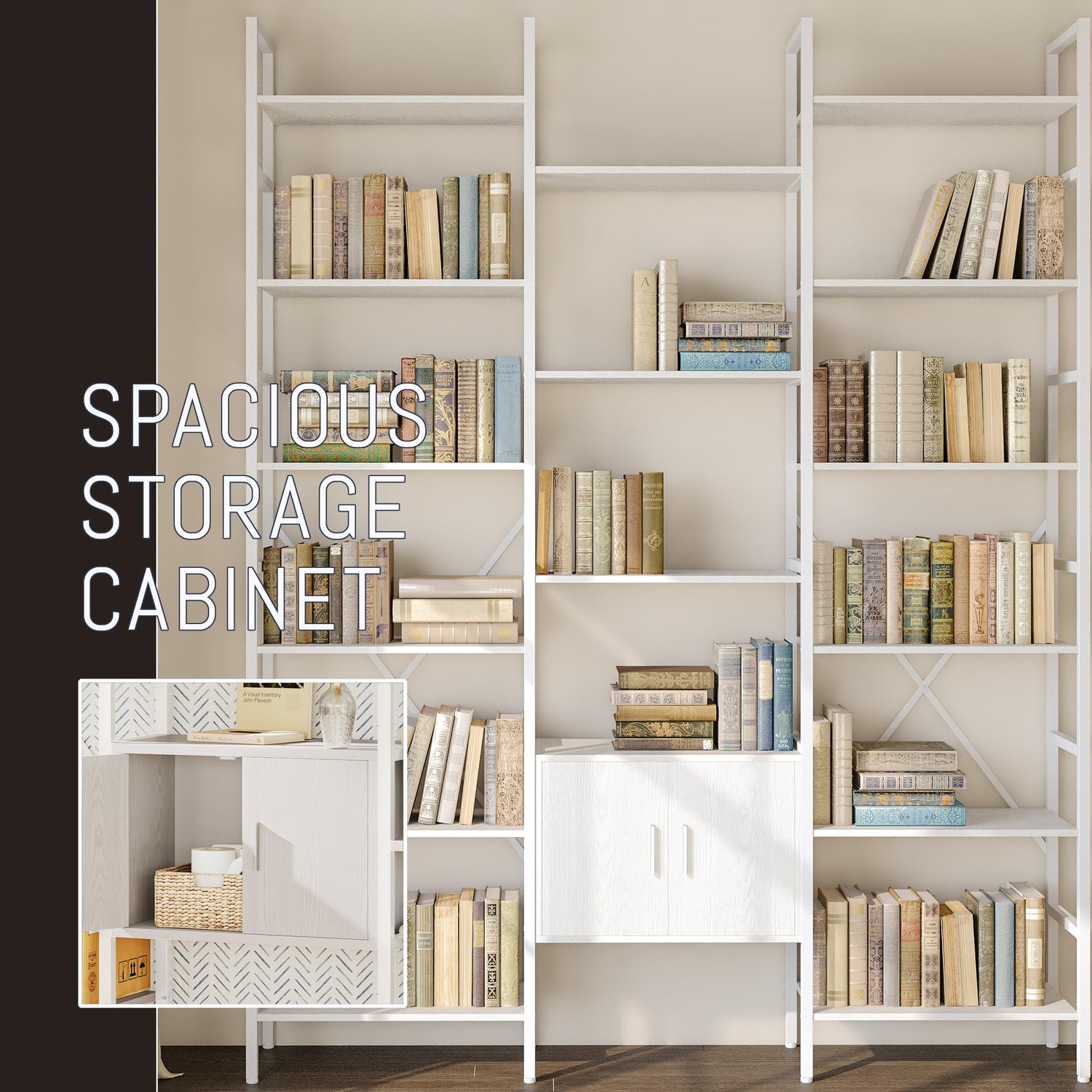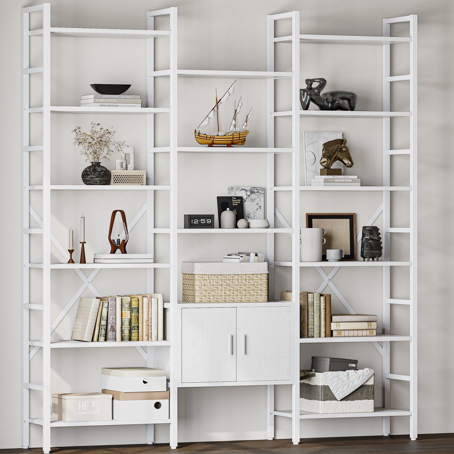 astimey 70x78 “ Triple 6 Tier Book Shelf, Industrial Large Bookcase with Storage Cabinet, Tall Bookshelf with 16 Open Display Shelves Metal Frame Furniture for Living Room Bedroom Home Office White