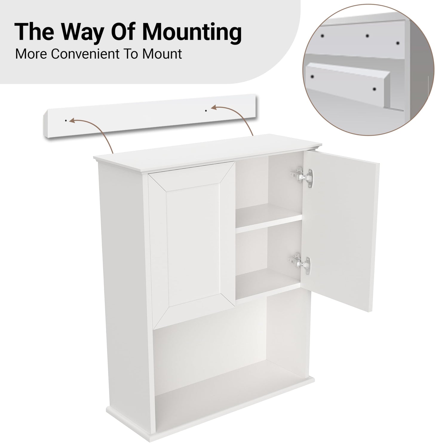 Bathroom Wall Cabinet Wooden with 2 Doors,Over the Toilet Storage Cabinet,Bathroom and Laundry Wall Mount Storage Medicine Cabinet with Open and Adjustable Shelf,Easy Assembly (Style A -1 PC, White)