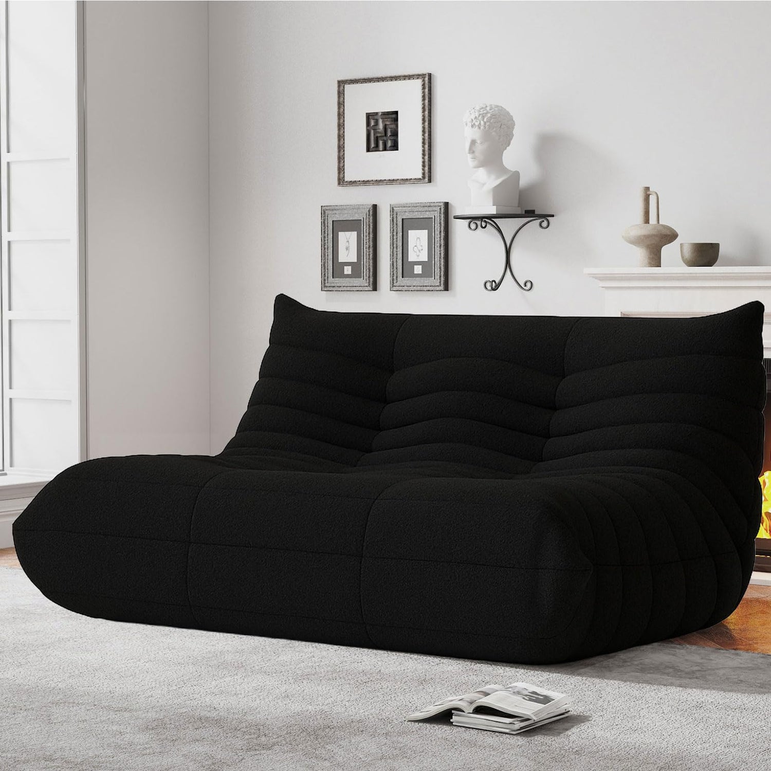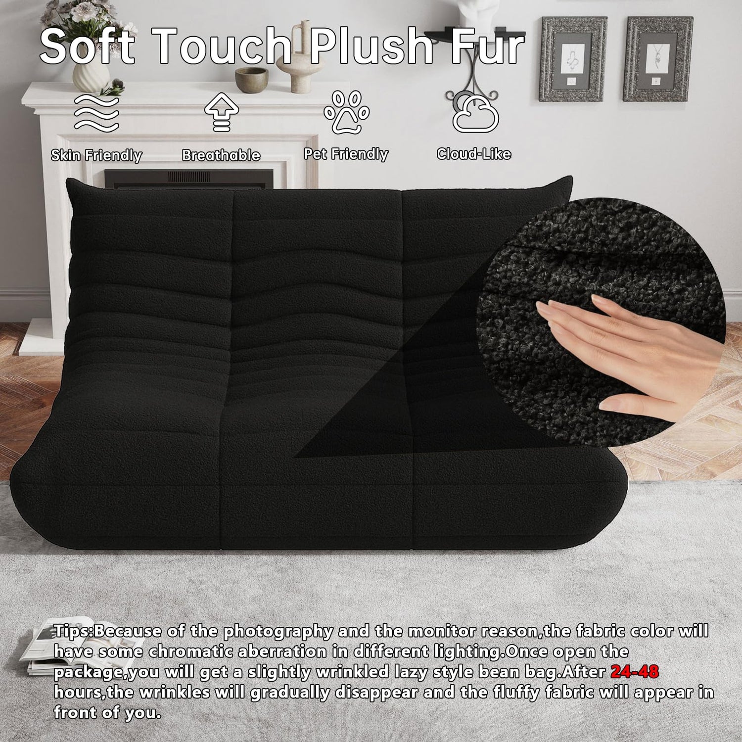 Bean Bag Chairs for Adults, Memory Foam Couch Loveseat Sofa Chair, Soft Teddy Material Cozy Comfy Reading Nook Chairs, Floor Chair for Living Room Bedroom Office(Black)