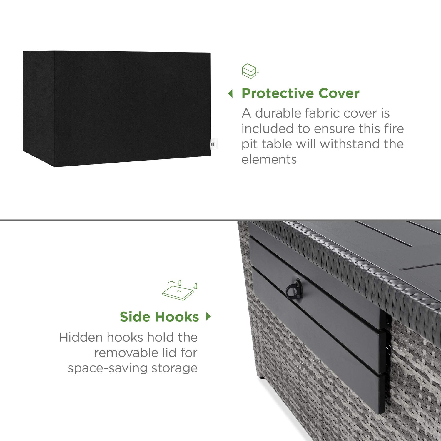 • DURABLE WICKER, WITH COVER INCLUDED: High-quality, weather-resistant wicker is woven over a sturdy, aluminum frame, and a durable fabric cover is included to ensure this fire pit table will withstand the elements; OVERALL DIMENSIONS: 52"(L) x 34"(W) x 24.75"(H); Items contained in 2 separate boxes. Transportation times may vary per box.