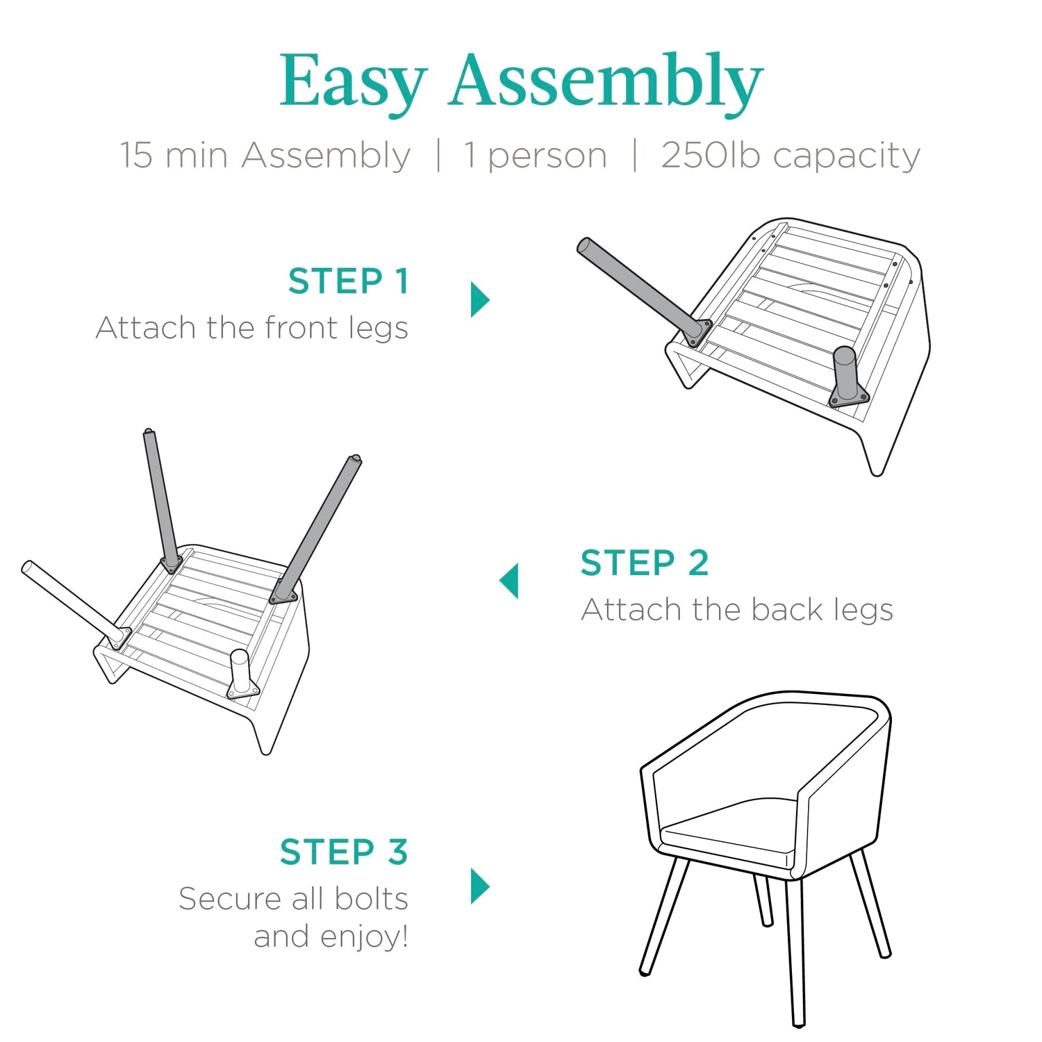 - EASY ASSEMBLY: Enjoy a set of two chairs in as little as 15 minutes; a straightforward 3-step assembly for your convenience