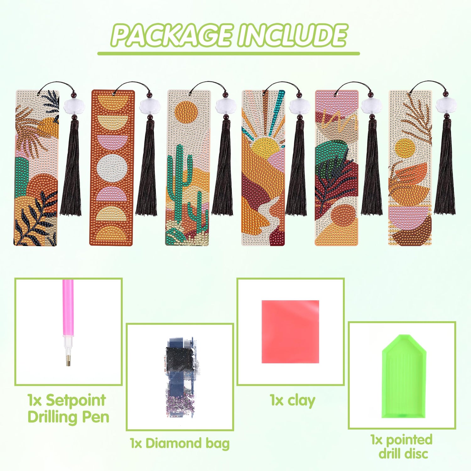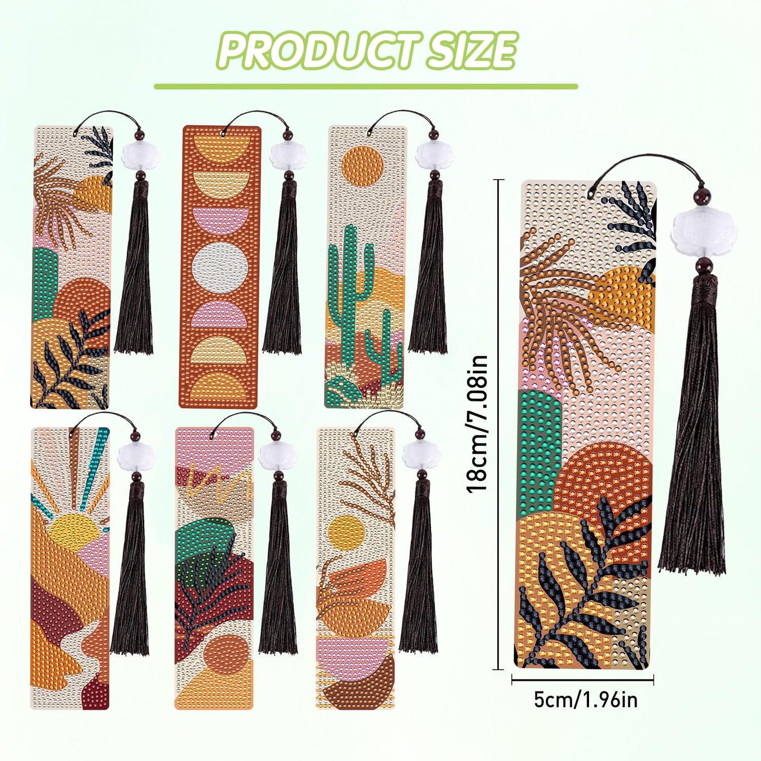 Boho Diamond Painting Bookmark Kit: 6PCS Aesthetic Diamond Art Bookmarks with Tassels, Bohemian Diamond Art Book Marks, DIY Craft Gift for Book Lovers, Reading Accessories for Adults & Kids