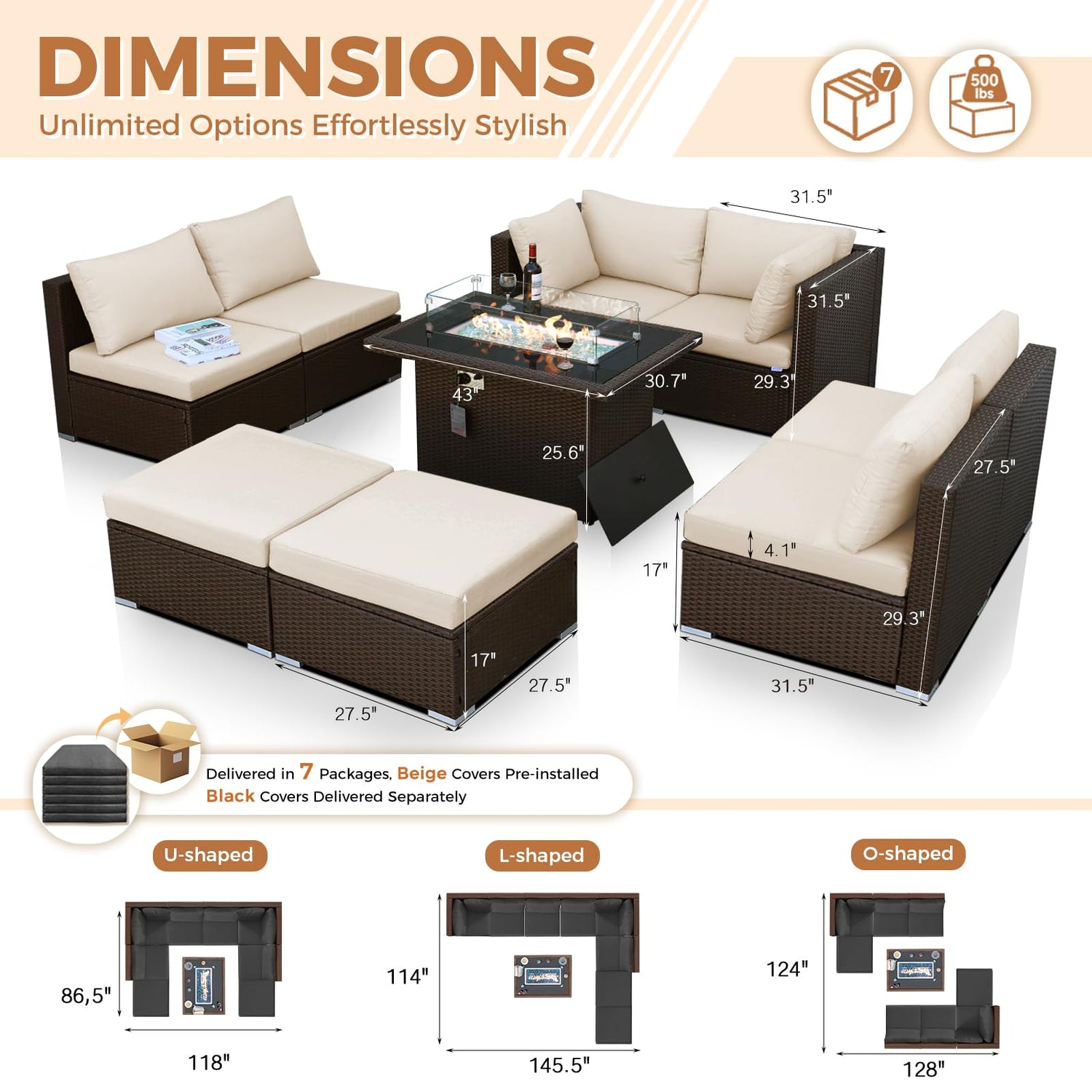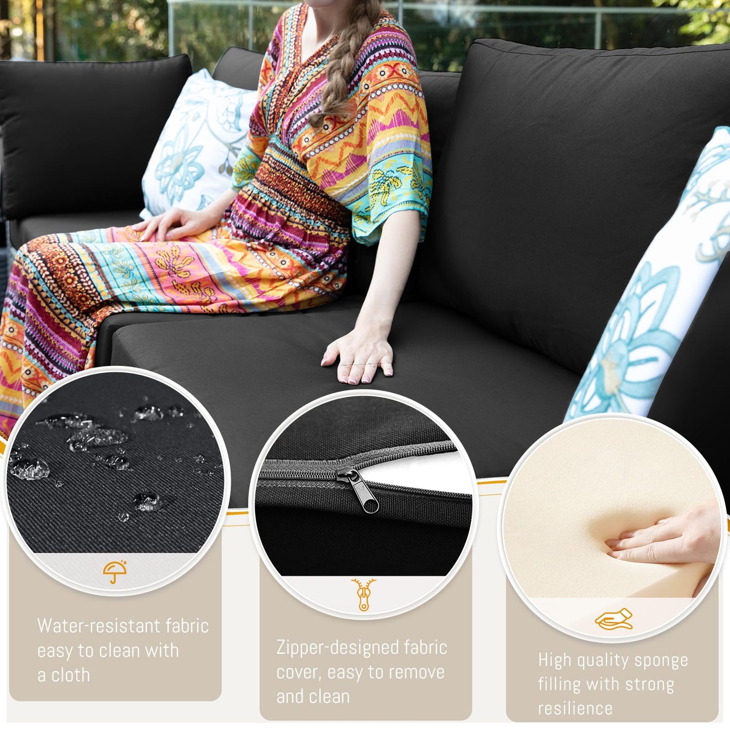 - Dual Color Cushion Covers Included: Your patio sofa set comes with a beige cushion cover pre-fitted on the cushions, plus an additional set of cushion covers in your chosen color black, which will be shipped separately in its own package; This allows you to easily swap the covers anytime, giving you the flexibility to refresh your outdoor décor with minimal effort