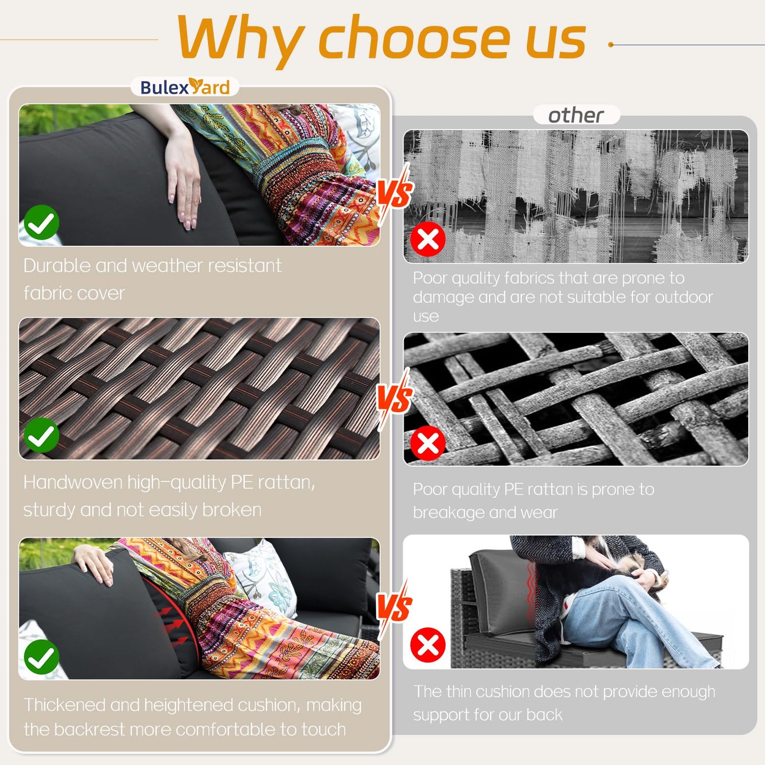 - Simple Assembly with Clear Instructions: This outdoor seating set comes with a detailed instruction manual, all necessary accessories in the hardware kit, and an easy-to-follow video guide; Even if you’ve never assembled furniture before, you’ll find the process effortless; Plus, our customer service and technical support teams are always ready to assist you with any questions or issues you may encounter