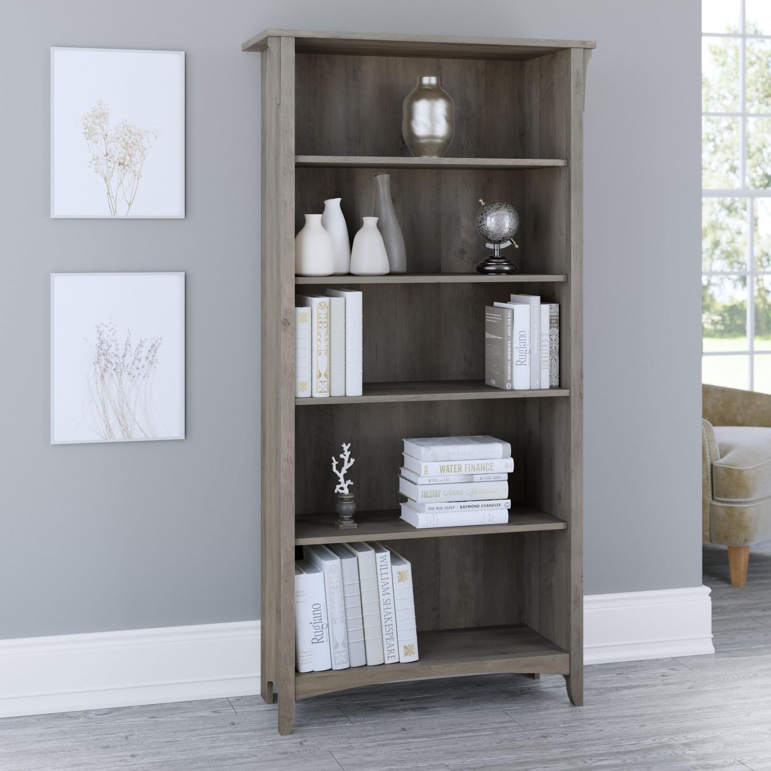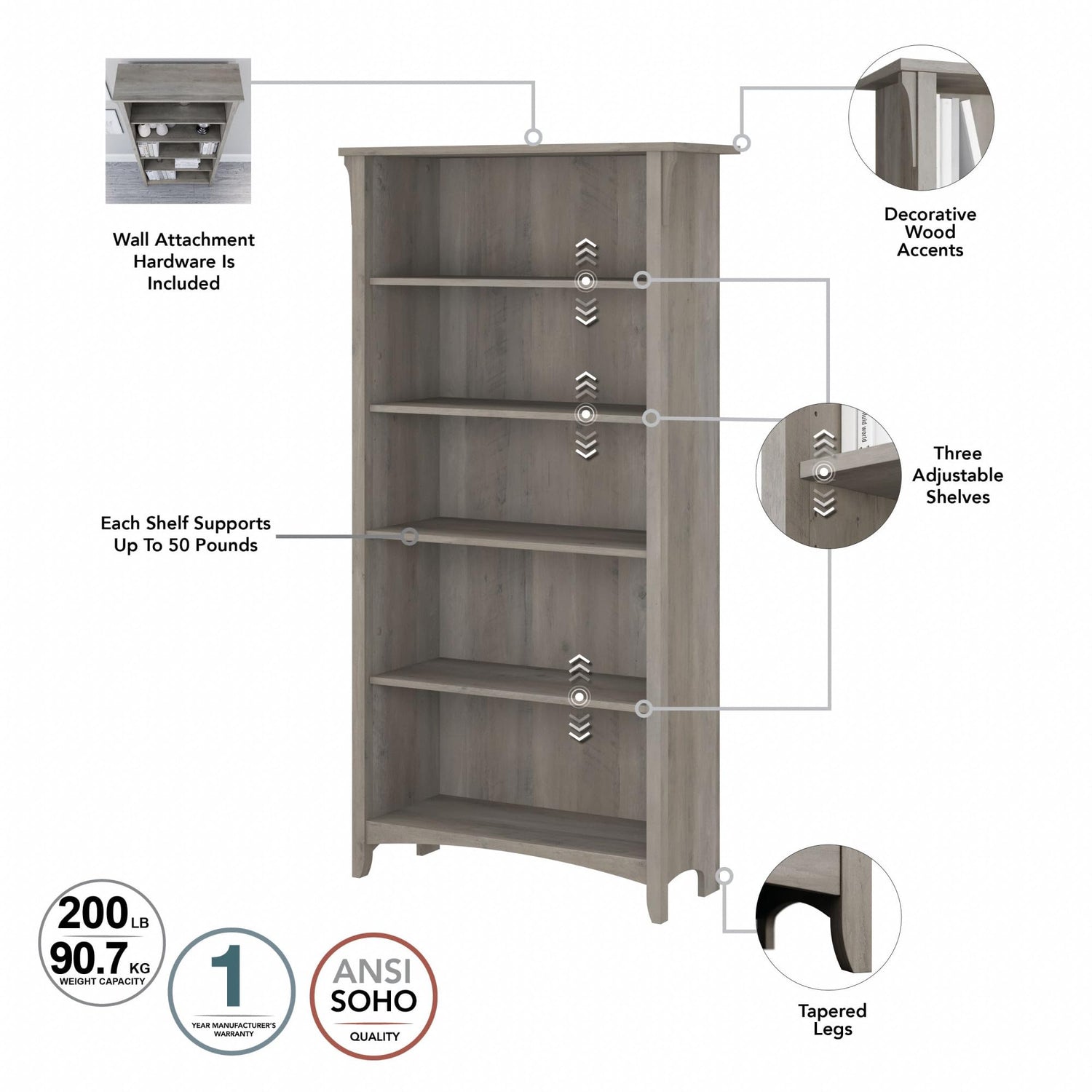 Bush Furniture Salinas 5 Shelf Bookcase in Driftwood Gray, Tall Bookshelf, Large Book Shelf for Living Room, Home Office, or Entryway