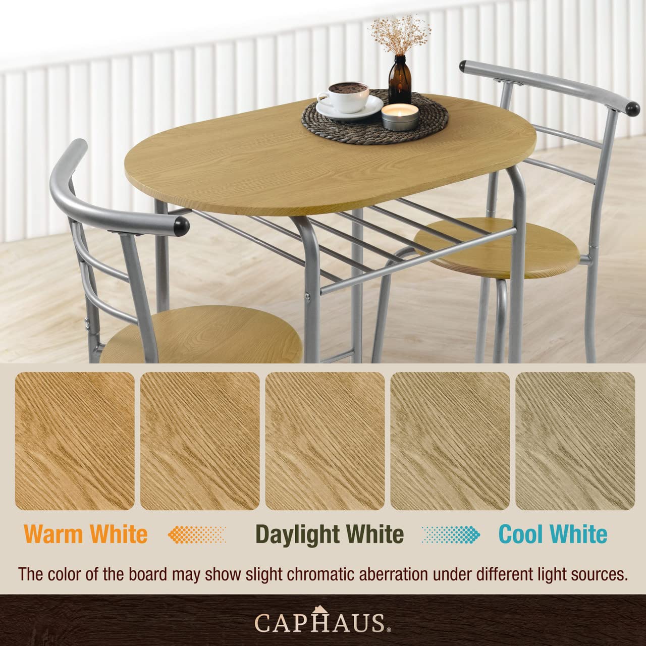 CAPHAUS 3 Pieces Dining Set for 2, Small Kitchen, Dining Room Table Set w/Steel Frame, 3 Pieces Patio Set w/Wine Rack, Small Dining Table Set for 2, Outdoor Dining Round Table Set, Natural Oak
