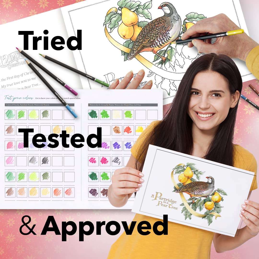 - CELEBRATE IN COLOUR For your colouring delight our resident artists have created a 3-in-1 activity book: 12 charming cards, 12 Days of Christmas; and 12 months of the year - so you can relax bringing Christmas spirit into being.