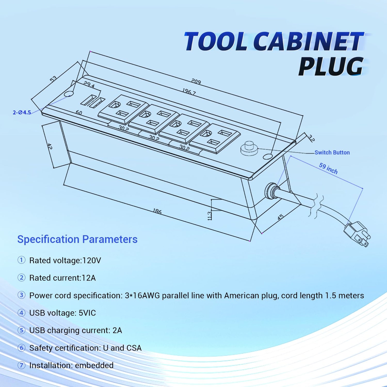 - 【UPGRADE FUNCTION】: This tool cabinet with drawers is equipped with built-in power outlets (4 power outlets and 2 USB ports) with overcurrent protection switches to allow you to charge small machines while operating.