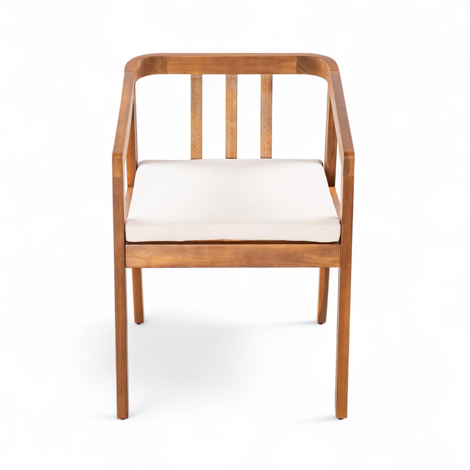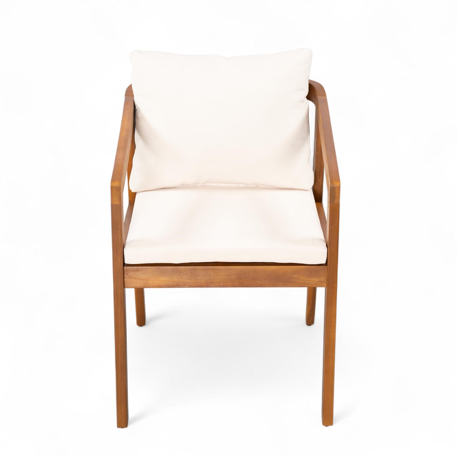 Christopher Knight Home Lucid Set of 2 Outdoor Dining Chair, Acacia Wood Frame Dining Chairs, Accent Chair Set with Comfortable Cushions, Patio Armchair for Backyard Poolside Garden, Natural + Beige