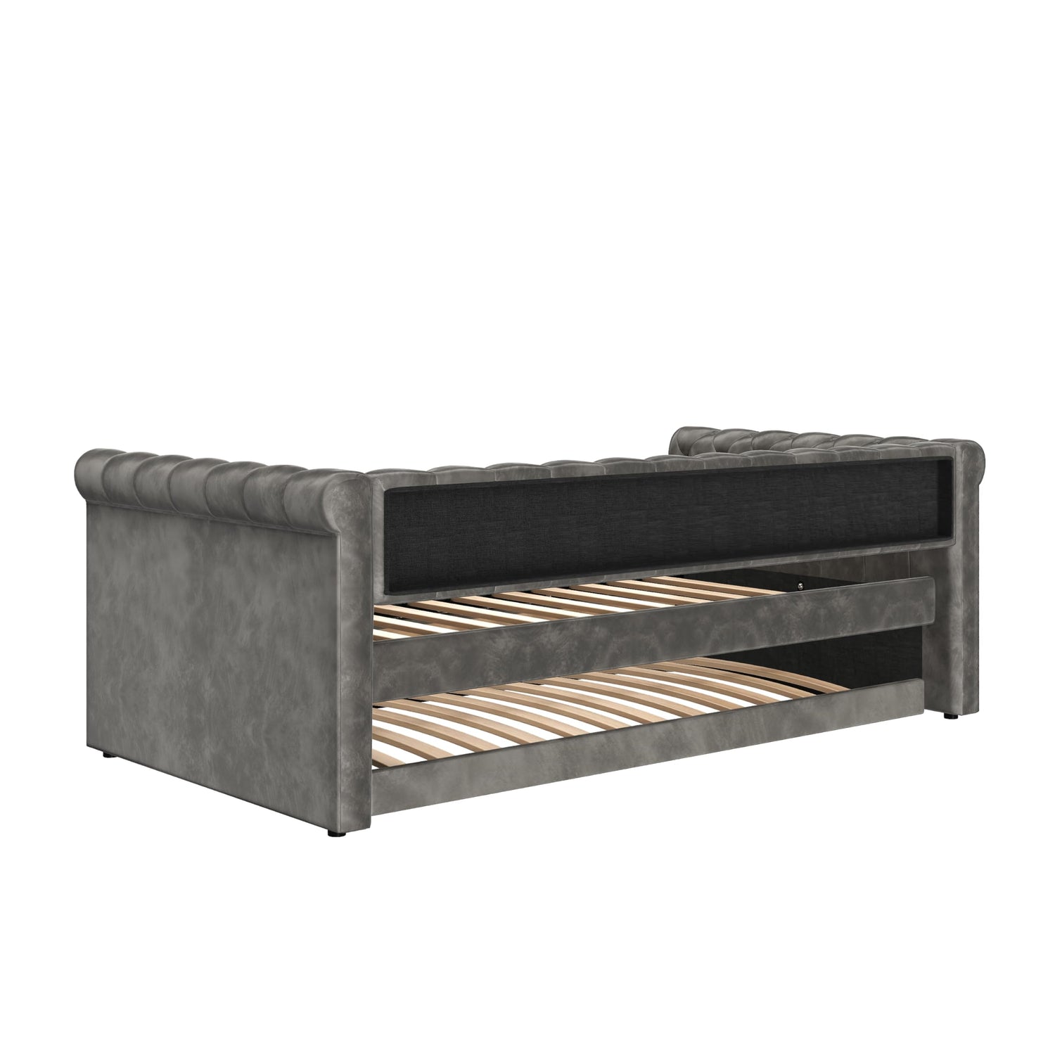 Christopher Knight Home Upholstered Daybed with Trundle, Twin Size Trundle Sofa Bed, Couch Bed with Backrest and Curved Armrests, No Box Spring Needed, for Living Room, Bedroom and Guest Room, Grey