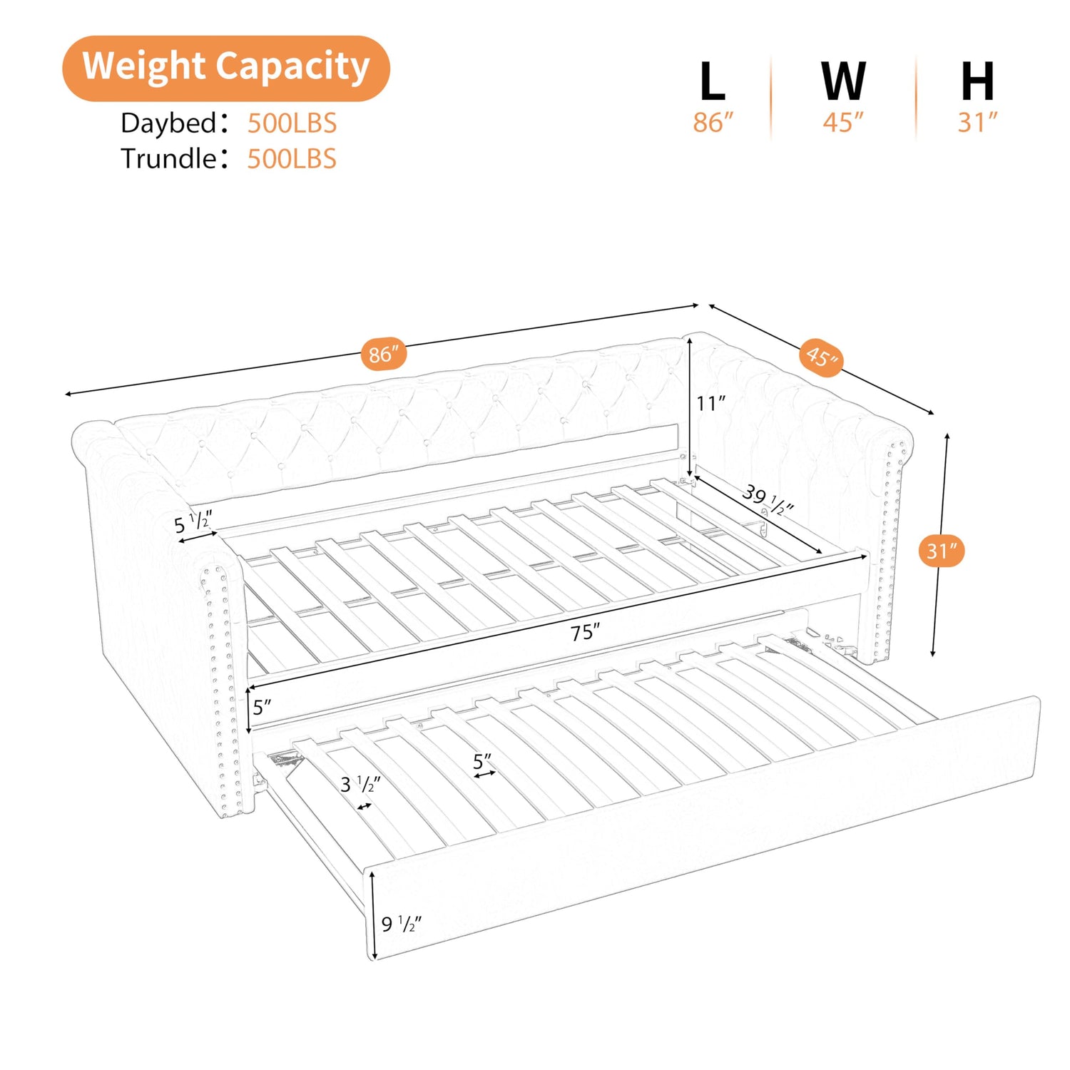 - 【Convenient Trundle Daybed】The convenient trundle feature of this daybed allows for efficient space utilization, effortlessly transitioning from a comfortable seating area during the day to a convenient sleeping space at night with ease