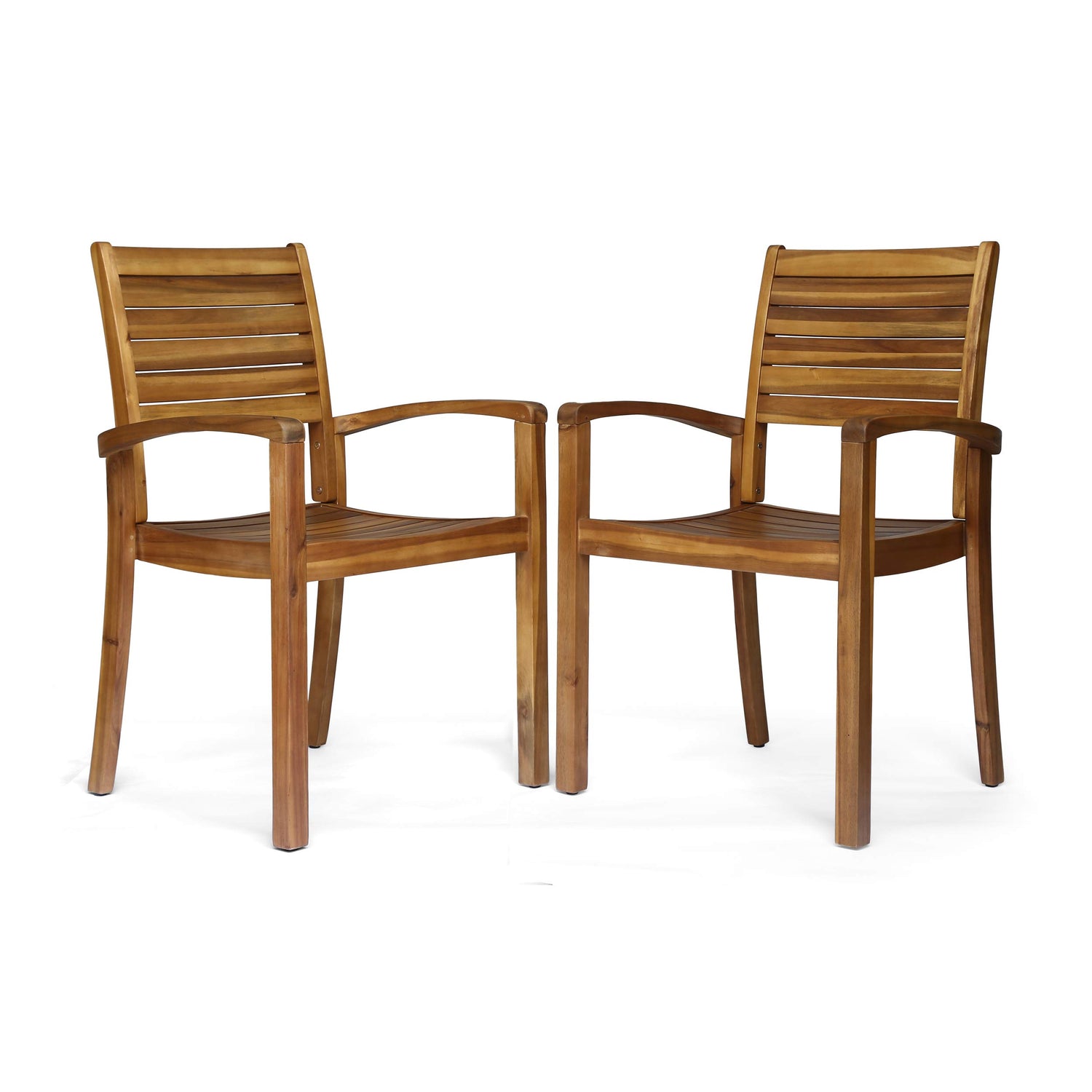 Christopher Knight Home Watts Outdoor Acacia Wood Dining Chairs, Teak Finish (Set of 2)