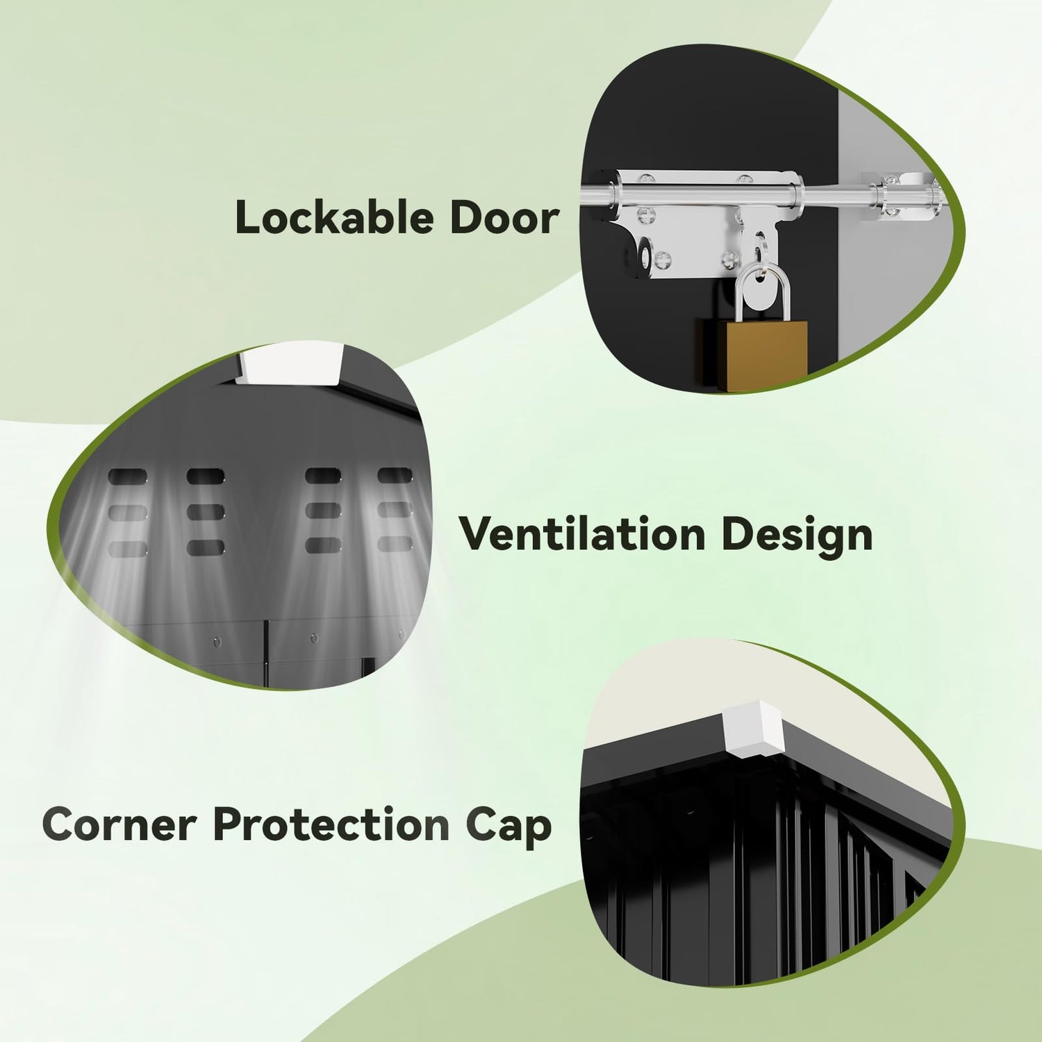 - Outdoor Shed:This storage shed is made of high-quality galvanized steel and covered with a powder-coated finish.Its durable construction ensures that it can withstand harsh weather conditions and ensure your items remain safe