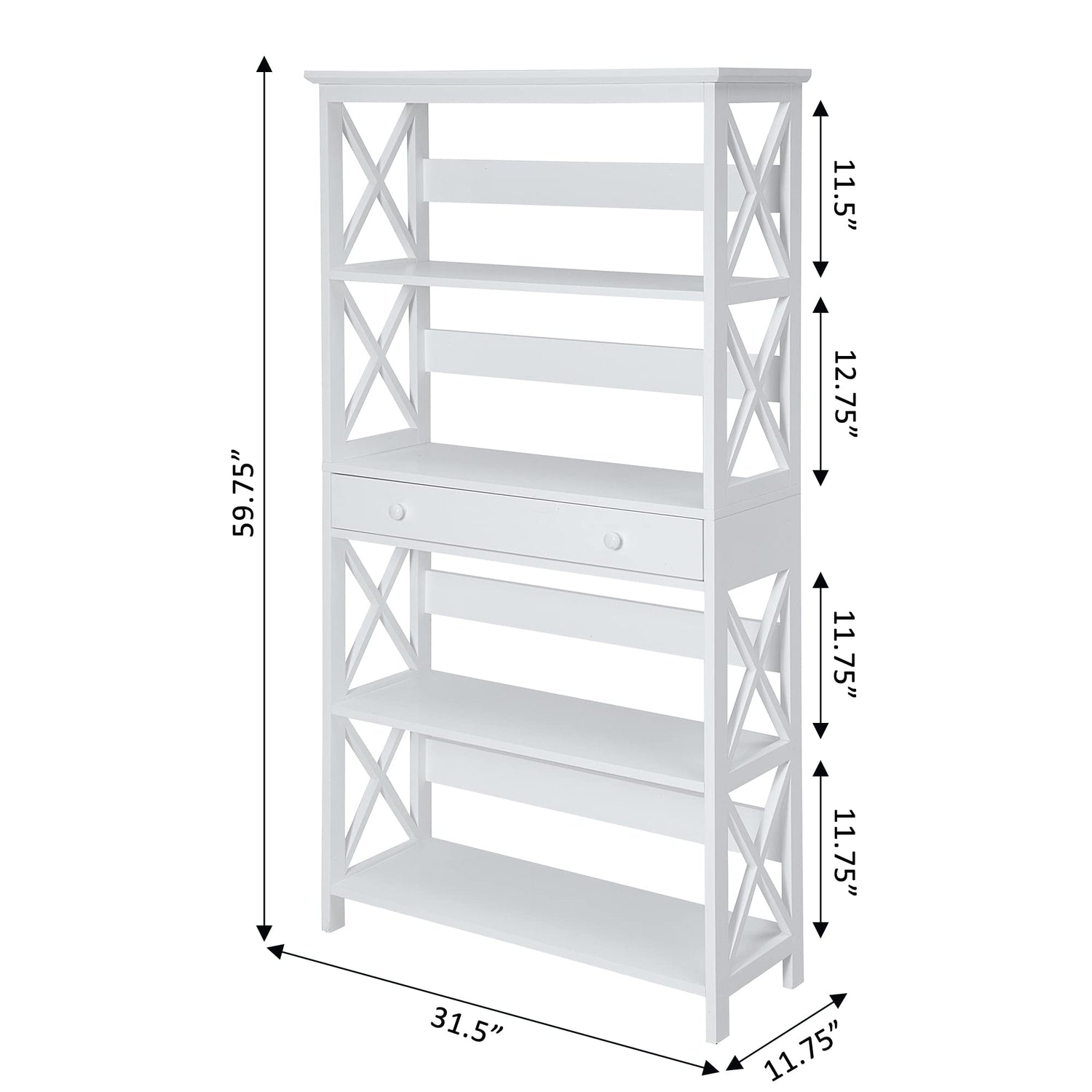 Convenience Concepts Oxford 5 Tier Bookcase with Drawer, White,11.75"D x 31.5"W x 59.75"H