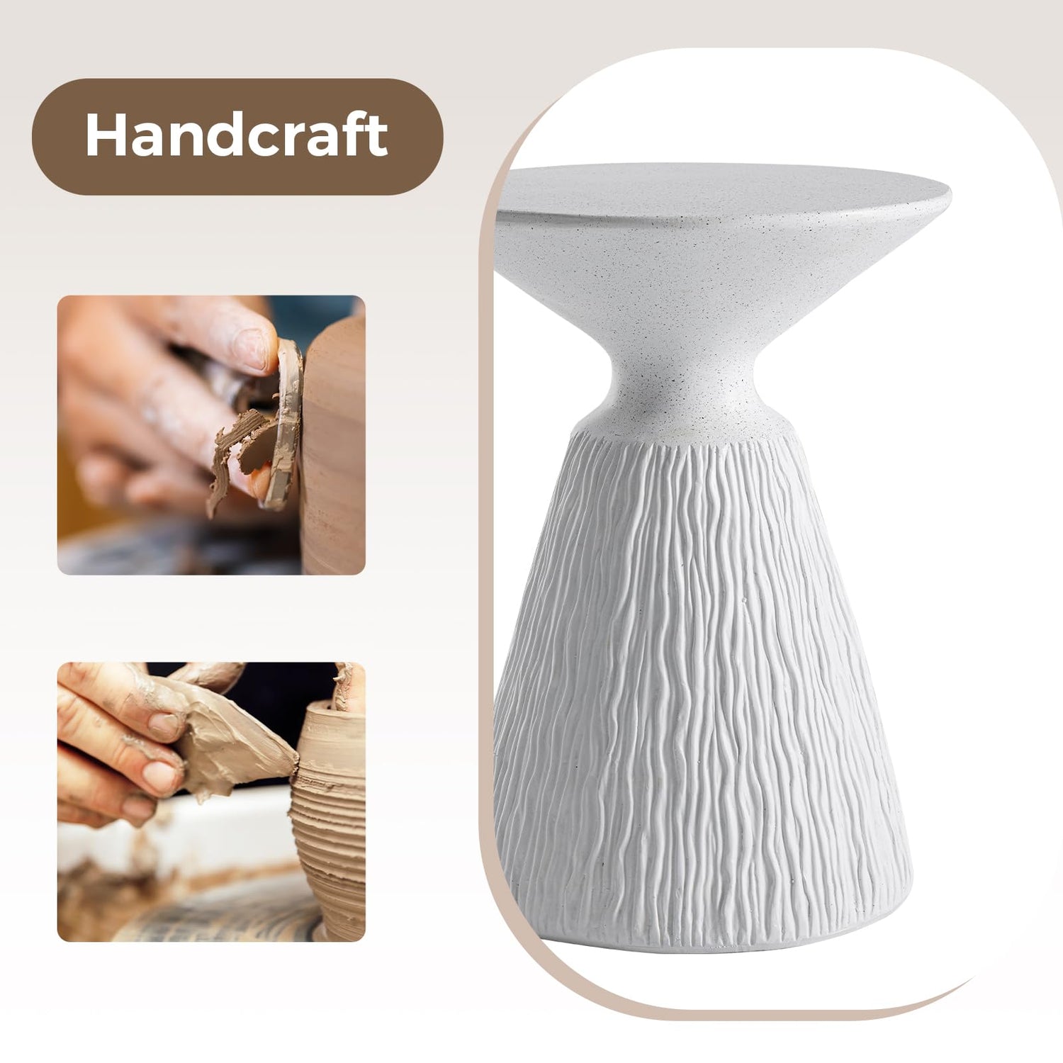 - [ELEGANT COLOR]The small round mushroom side table comes in a delicate spotted like white color. So it’s easy to match your decor or start with one or two and build your interior or exterior space around them. A potted vine draping over the sides looks fantastic in the living room. Serve drinks or coffee on it for your next patio brunch.