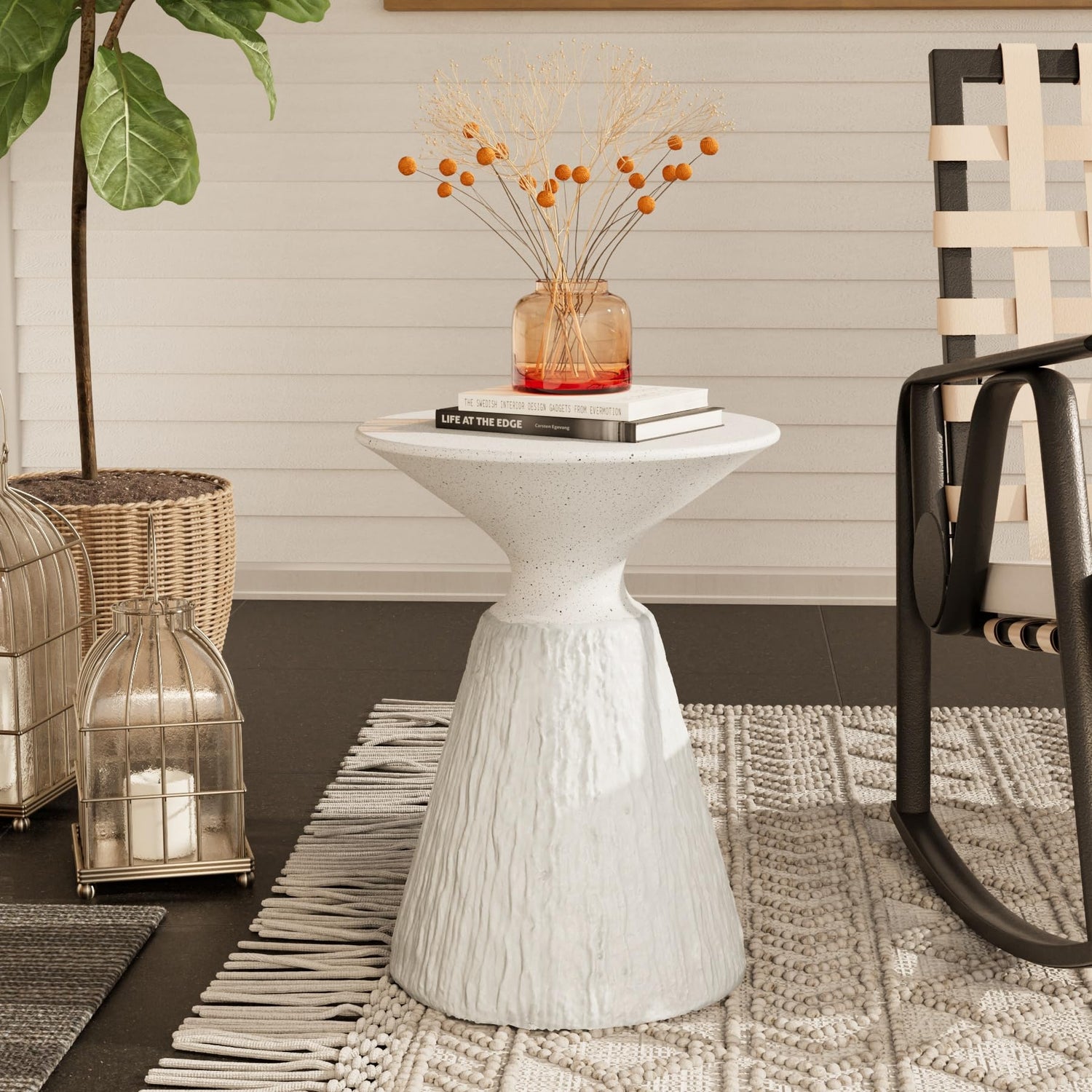 COSIEST Outdoor Side Table, Mushroom Shaped MgO Accent Table, Lightweight Patio End Table w Round Base, Top Plant Stand for Garden and Deck, Spotted White