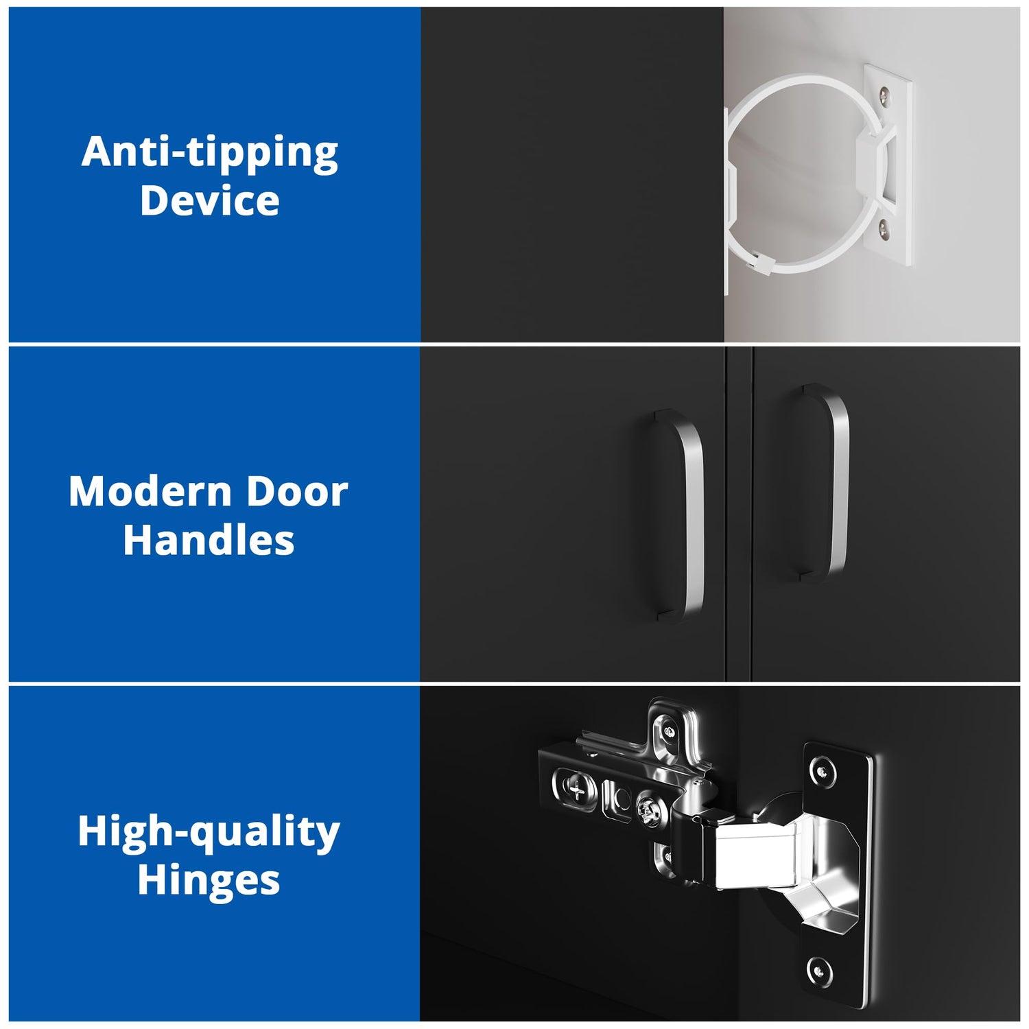 - Anti-Tip Devices: This modern bookshelf is safe as we have provided anti-tip wall tools in the package to keep it securely in place and prevent any wobbling