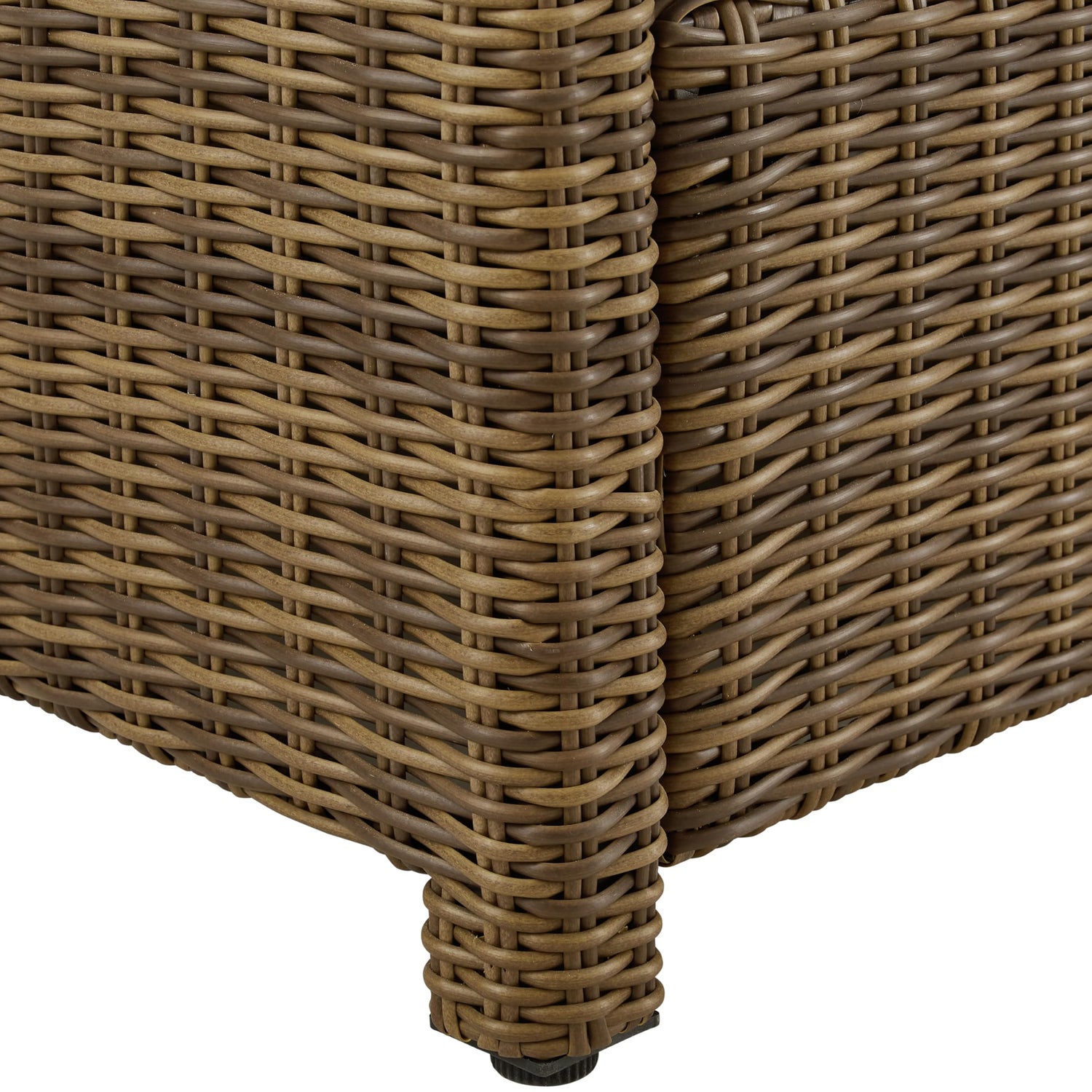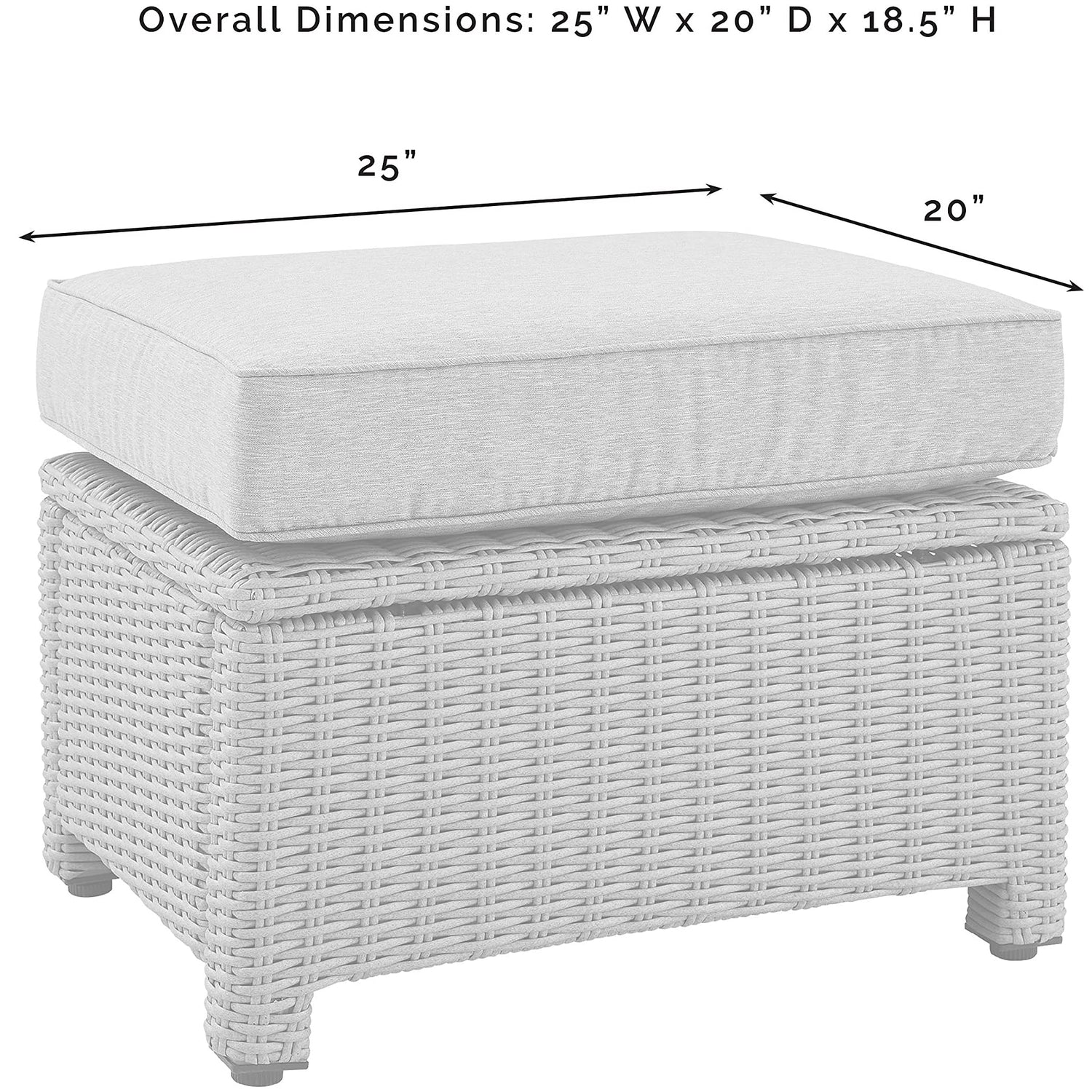 Details: The Bradenton Ottoman adds versatility to entertaining outside. Ideal for propping up your feet or as extra seating, this ottoman has all-weather resin wicker woven over a durable steel frame, plus a thick cushion covered in moisture-resistant solution-dyed polyester. Incorporated with the rest of the Bradenton collection or paired with an eclectic mix of patio furniture, the Bradenton Ottoman offers endless options for your outdoor space.