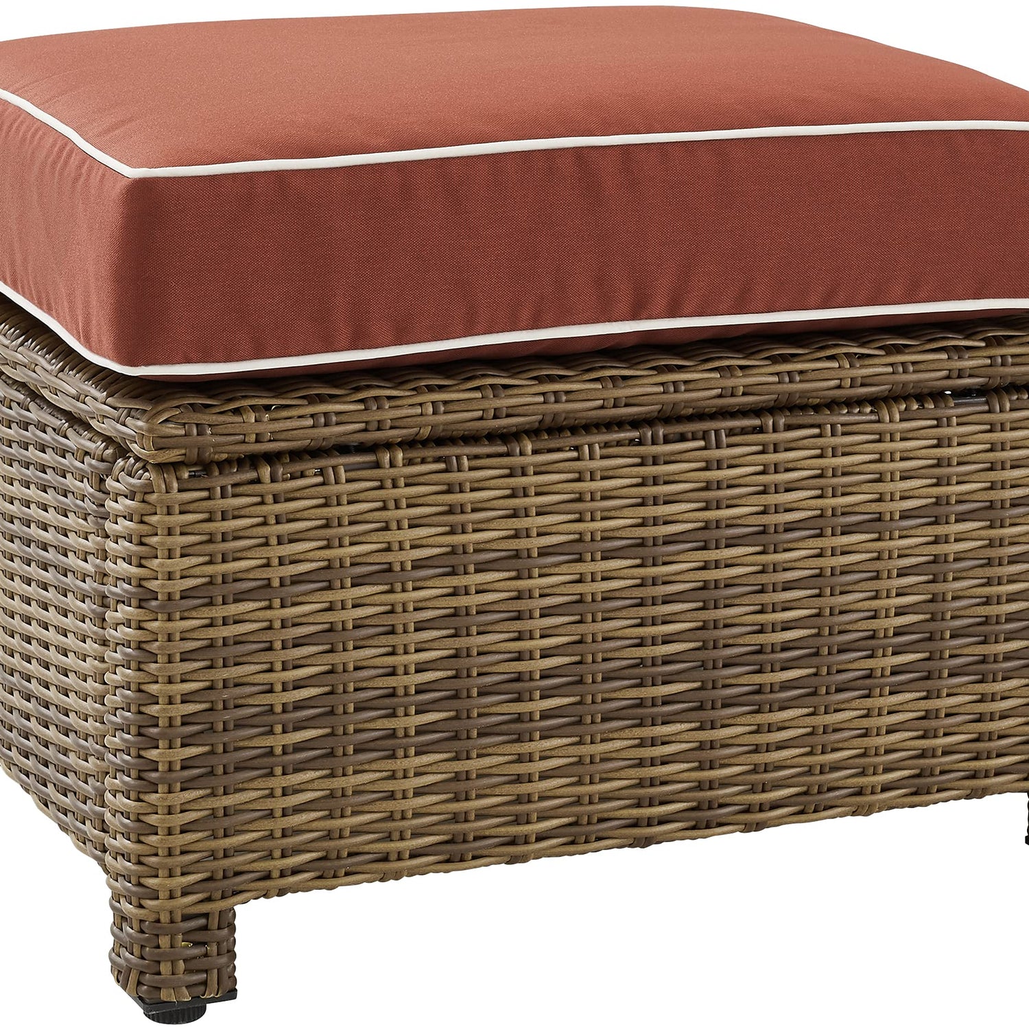 Crosley Furniture Bradenton Wicker Outdoor Ottoman Foot Rest for Patio, Deck, Porch, Brown with Sangria Cushions