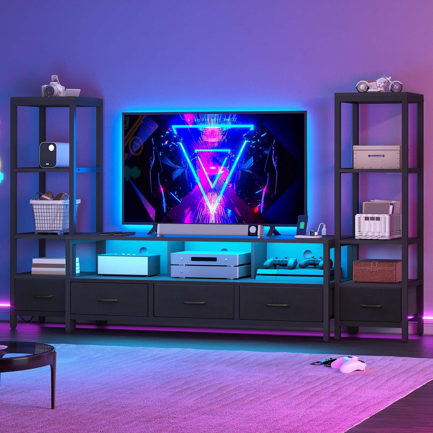 - Customizable Setup: This entertainment center with 2 Industrial 4-Tier Bookshelves, you can place the bookshelves however feels right for your room. Shift them to one side or both, whatever works for your vibe and available space.