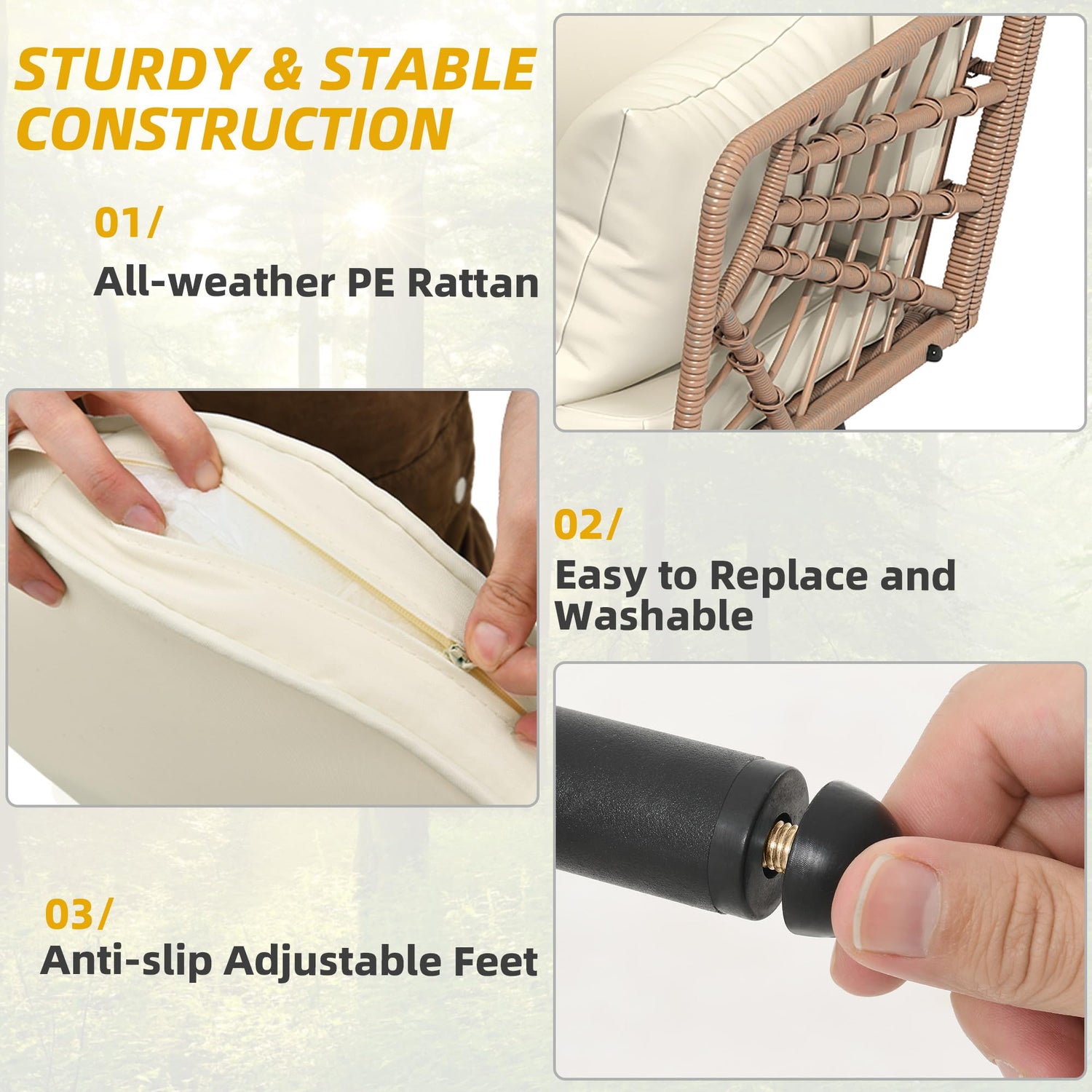 - Family-Friendly Strength: A powder-coated steel frame wrapped in PE rattan supports up to 794 lbs, comfortably seating 4-5 people; Adjustable anti-slip feet ensure stability on any surface, from patios to living rooms