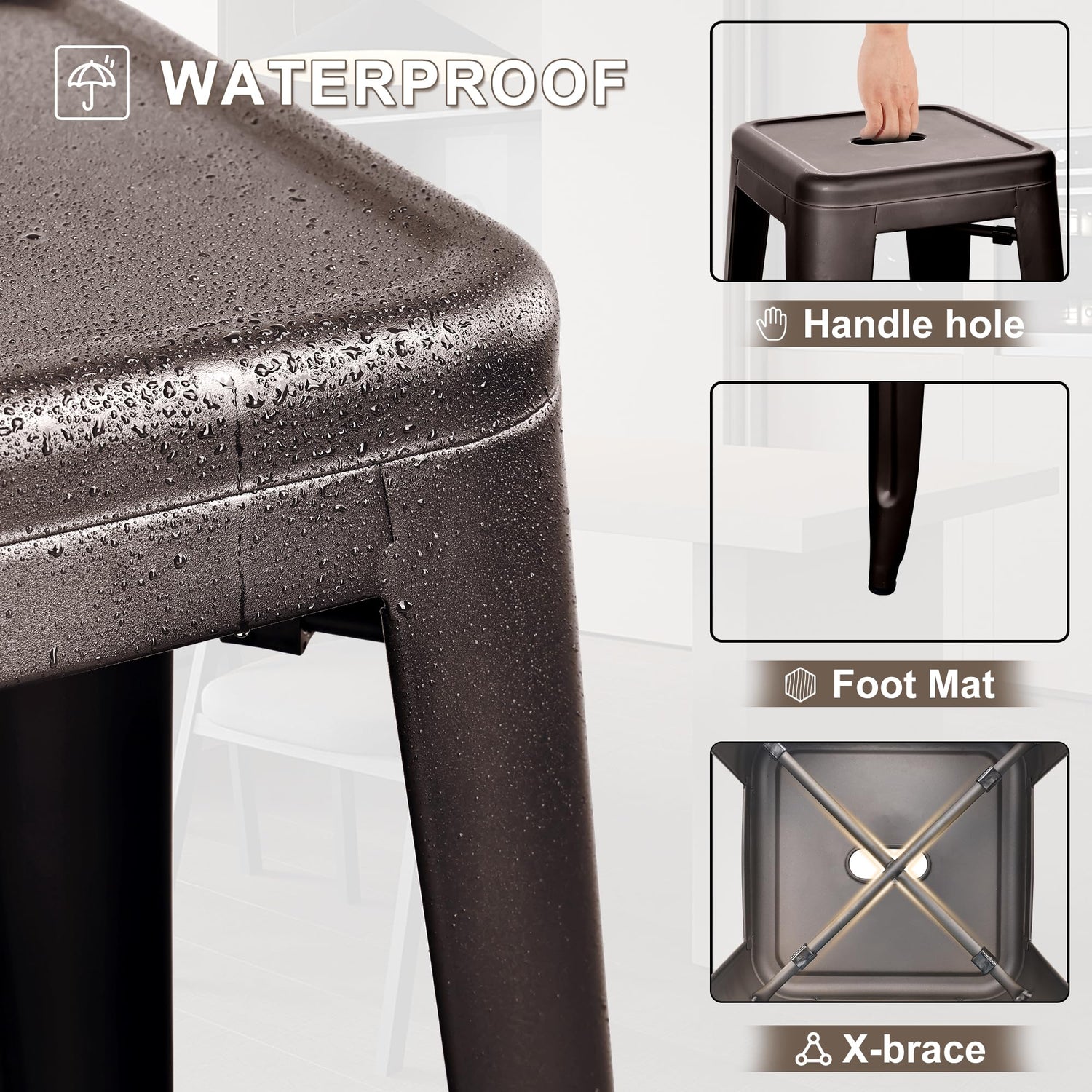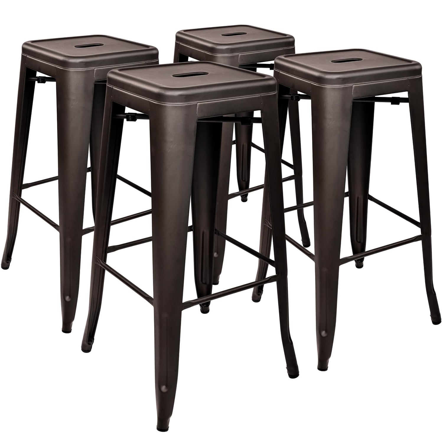 Elevon 30 Inches Metal Bar Stools, High Backless Stools, Indoor Outdoor Stackable Kitchen Stools, Set of 4, Gun