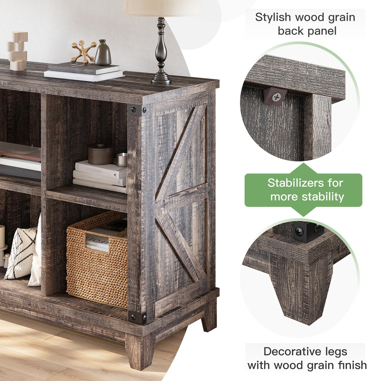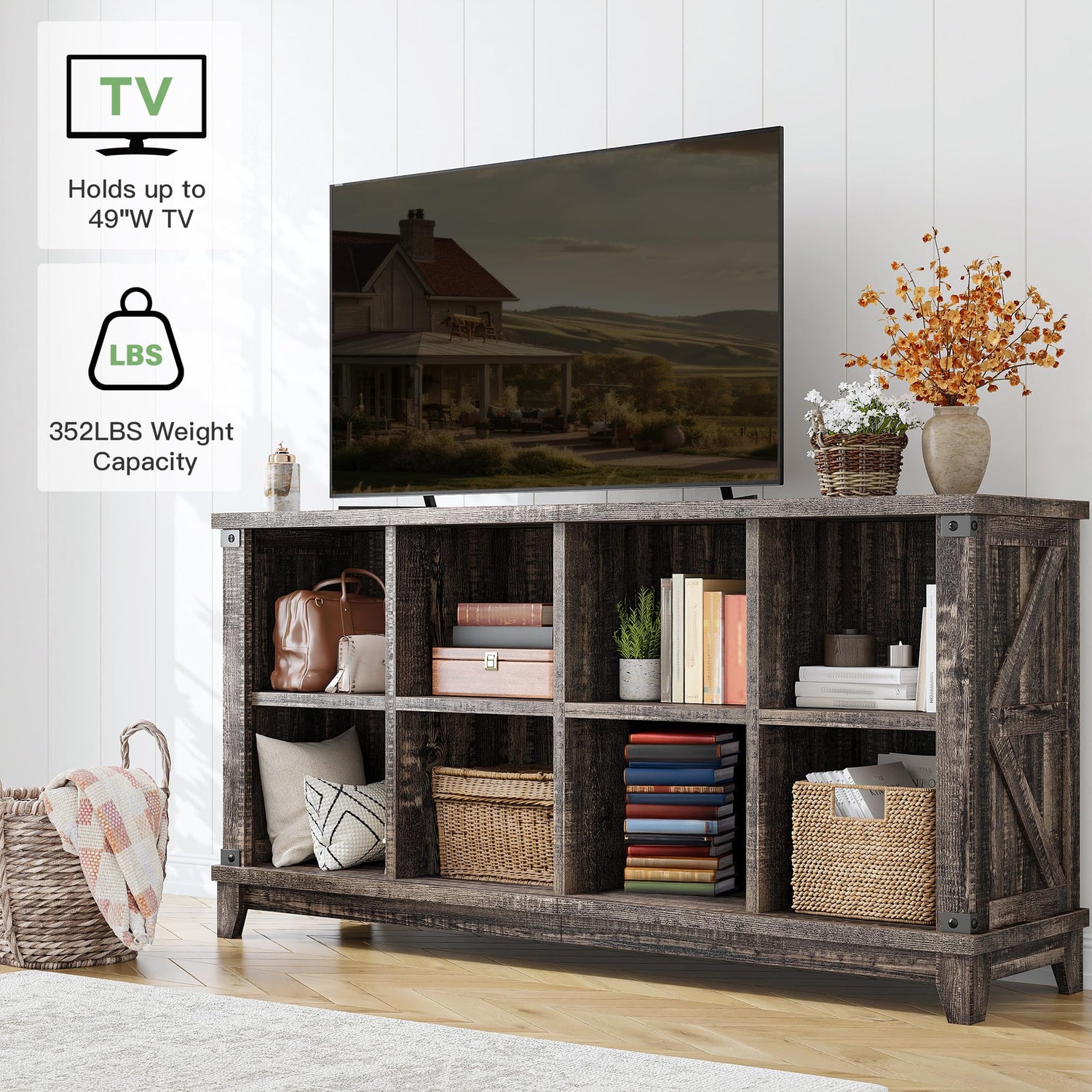 - 【49.1"W×11.8"D×27.1"H Farmhouse Bookshelves】Cube storage bookcase offers 8 cubes and measures 49.1"W×11.8"D×27.1"H. It provides ample storage space for a variety of items, including books, framed photos, storage baskets, potted plants, boxes, sculptures, clocks, TVs of the appropriate width, and decorative items. This product is suitable for use in a variety of settings, including living rooms, bedrooms and offices. It provides ample storage for books, decorations, and other items.