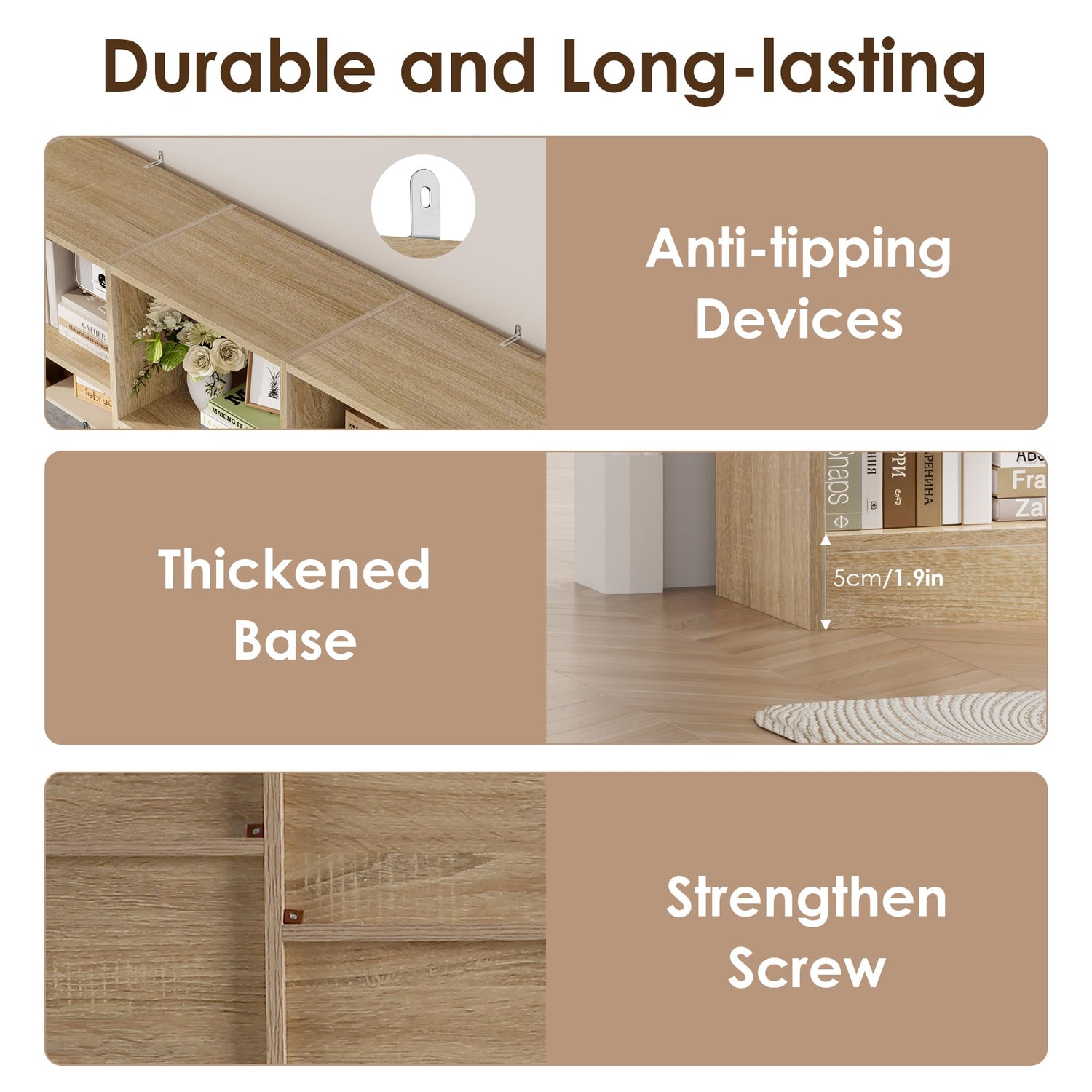- Superior Quality & Stability: Constructed from premium and selected particle board, this wide bookshelves is designed for long-lasting durability. Unlike adjustable shelves, the fixed shelves provide enhanced stability, ensuring the entire bookcase remains solid and secure. Each shelf can hold up to 33 lbs.