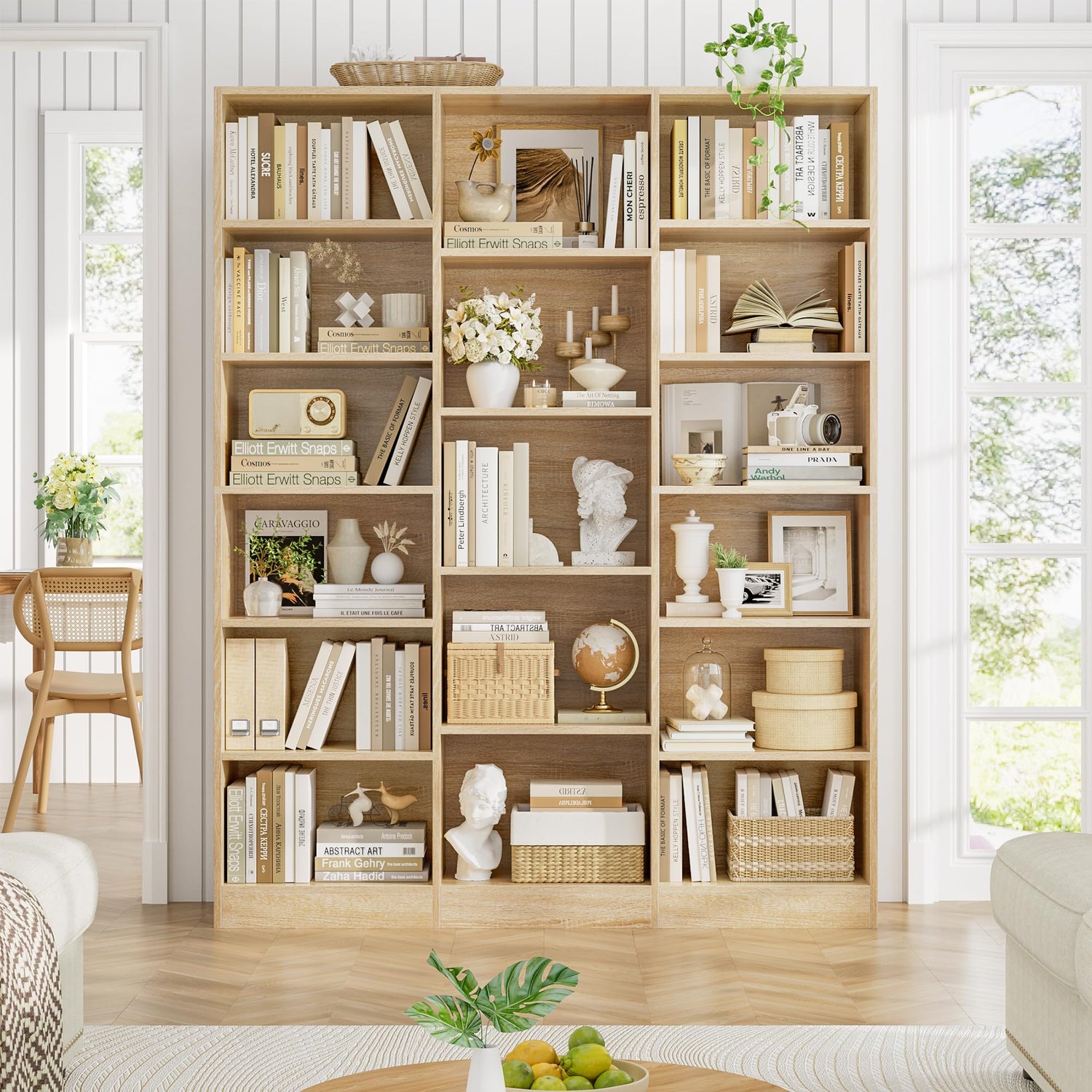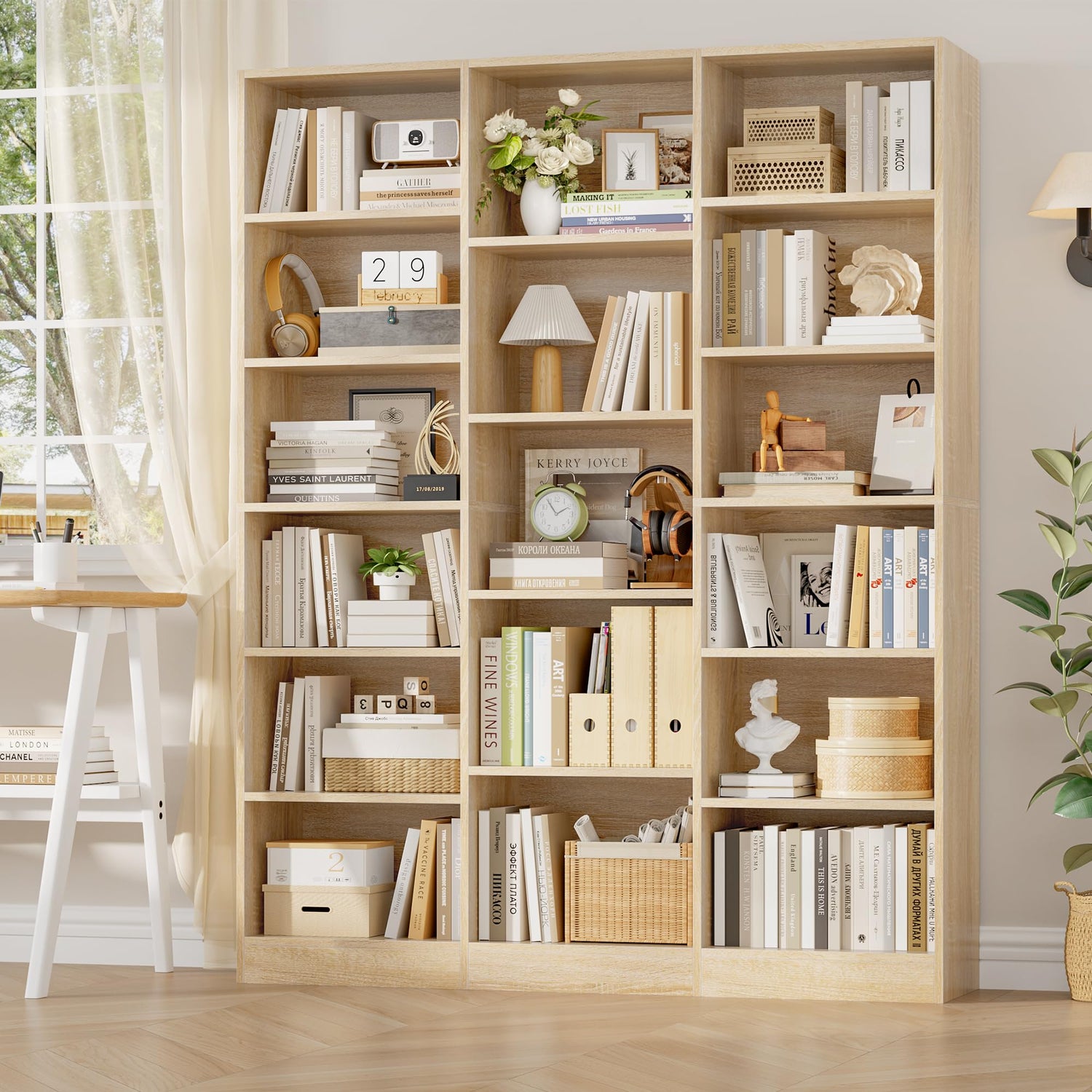 FACBOTALL Triple Wide Bookshelf, 6 Tier Large Bookshelf, Bookcase with 17 Open Display Shelves, 74'' Tall Bookcases and Bookshelves for Living Room, Home Office, Library, Light Oak