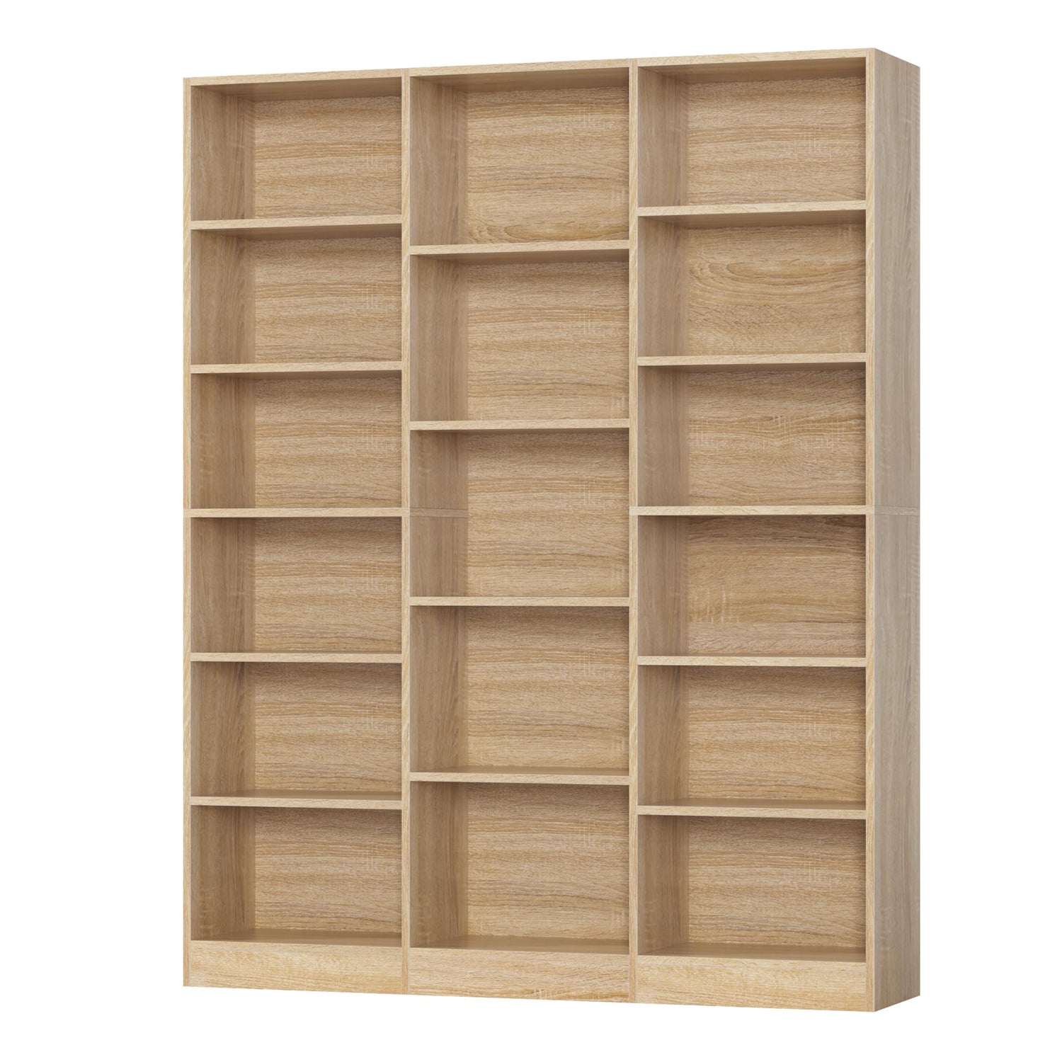 - Triple Column 6 Tier Bookshelf : With 17 open shelves, this light oak bookshelf offers plenty of room to store everything from books and DVDs to storage boxs and decorative pieces. You can keep your living space tidy and clutter-free with spacious storage capacity. Dimensions: 74'' H x 58.7'' W x 9.3'' D