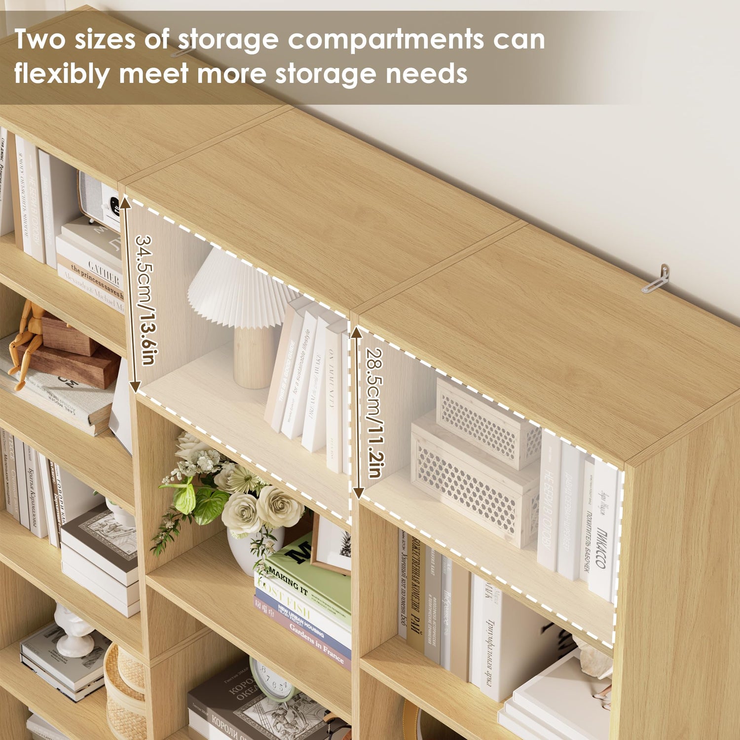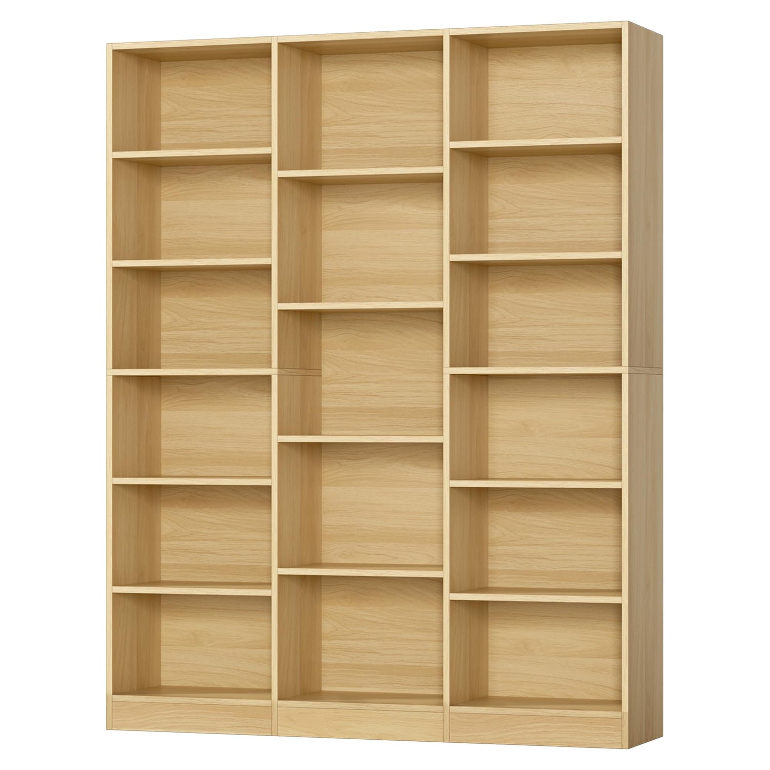 FACBOTALL Triple Wide Bookshelf, 6 Tier Large Bookshelf, Bookcase with 17 Open Display Shelves, 74'' Tall Bookcases and Bookshelves for Living Room, Home Office, Library, Natural