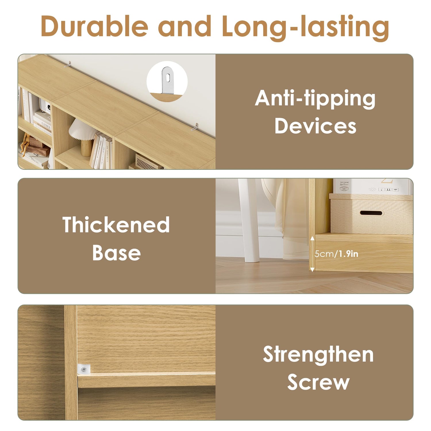 - Superior Quality & Stability: Constructed from premium and selected particle board, this wide bookshelves is designed for long-lasting durability. Unlike adjustable shelves, the fixed shelves provide enhanced stability, ensuring the entire bookcase remains solid and secure. Each shelf can hold up to 33 lbs.