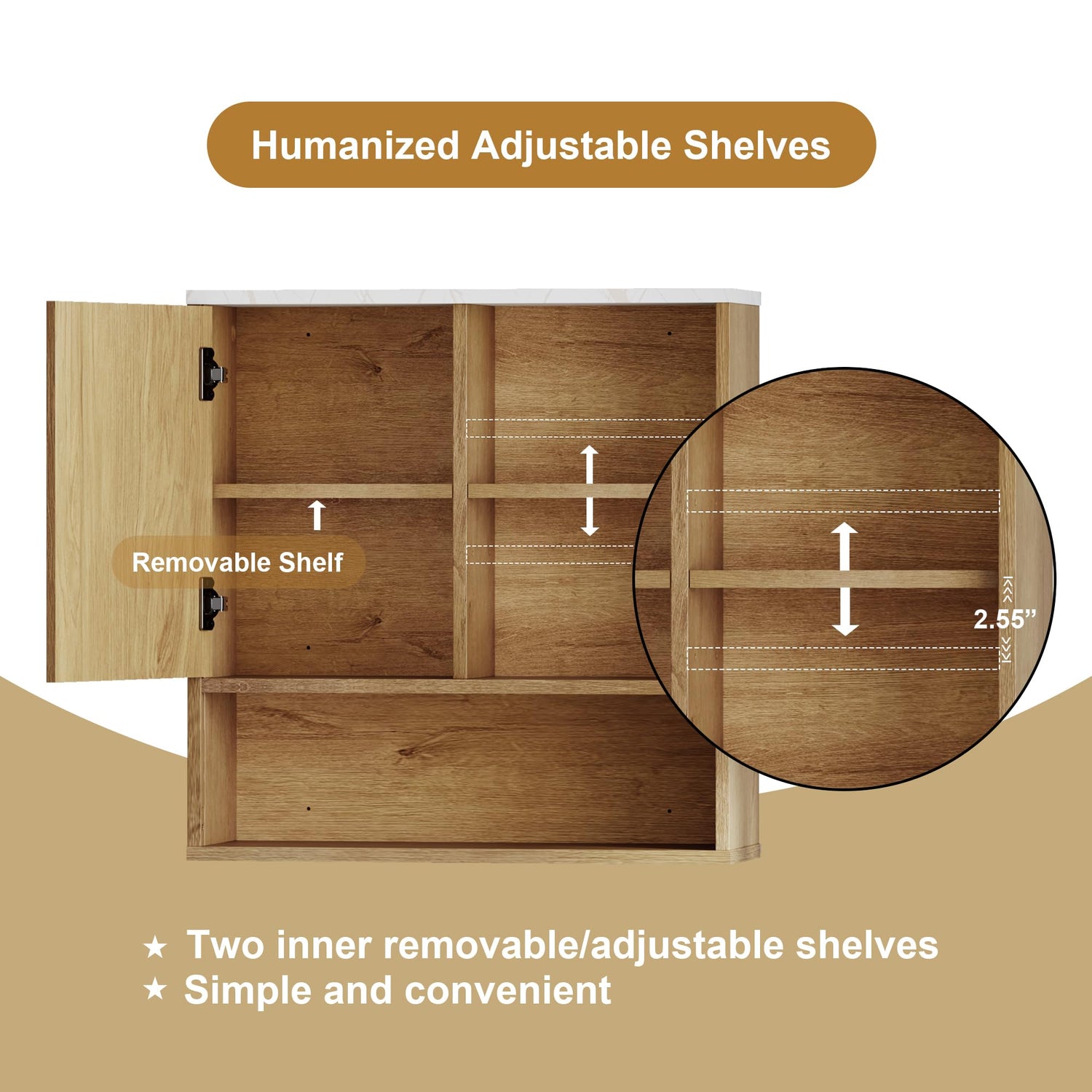 FerniTry Bathroom Cabinet Wall Mounted Fluted, Modern Medicine Cabinet Over The Toilet Storage Cabinet Faux Marble Top with Adjustable Shelf, Wood Wall Mounted Storage Cabinet Organizer(Natural Oak)