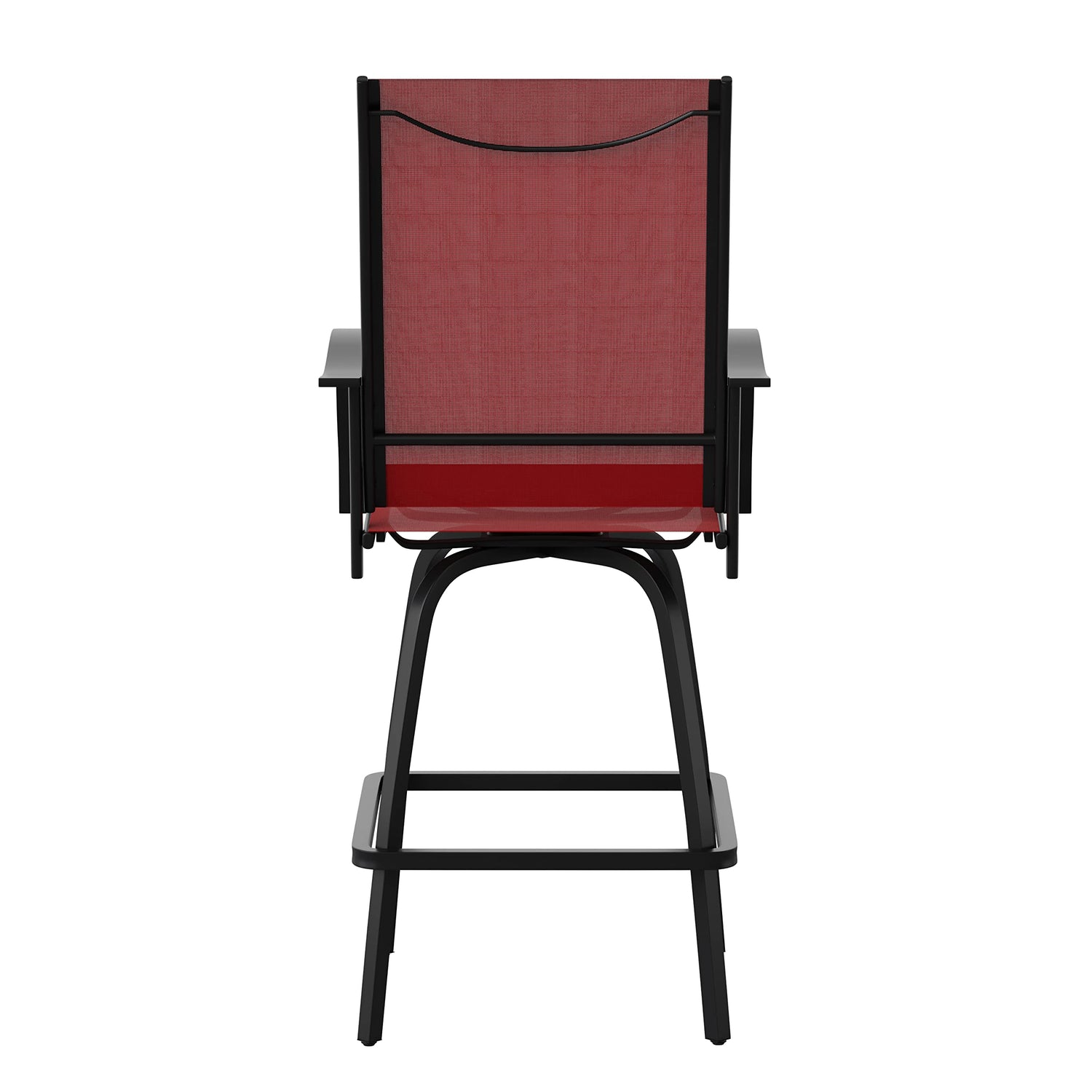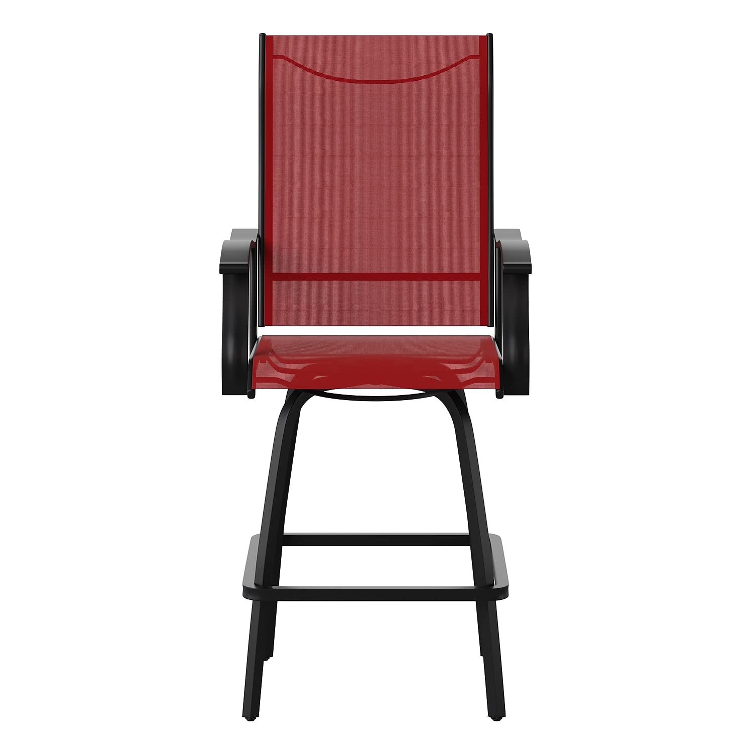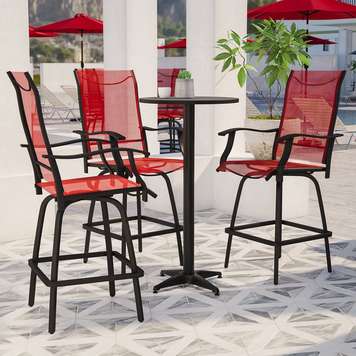 Flash Furniture Valerie Patio Bar Height Stools Set of 2, All-Weather Textilene Swivel Patio Stools with High Back & Armrests in Red