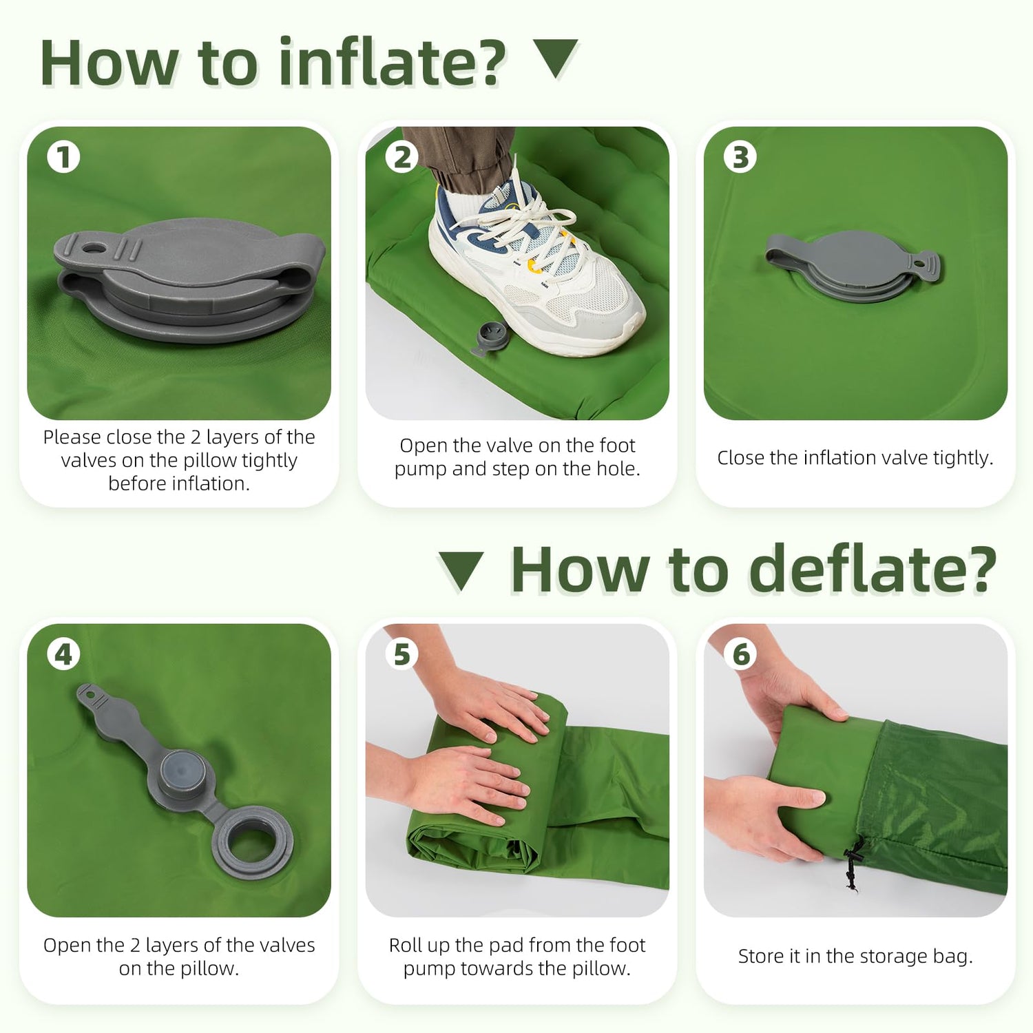 - 30s Foot Pump Inflation & 1s Deflate - No hand pump! Built-in foot pump inflates in half a minute. Upgraded no-leak valve ensures all-night firmness.