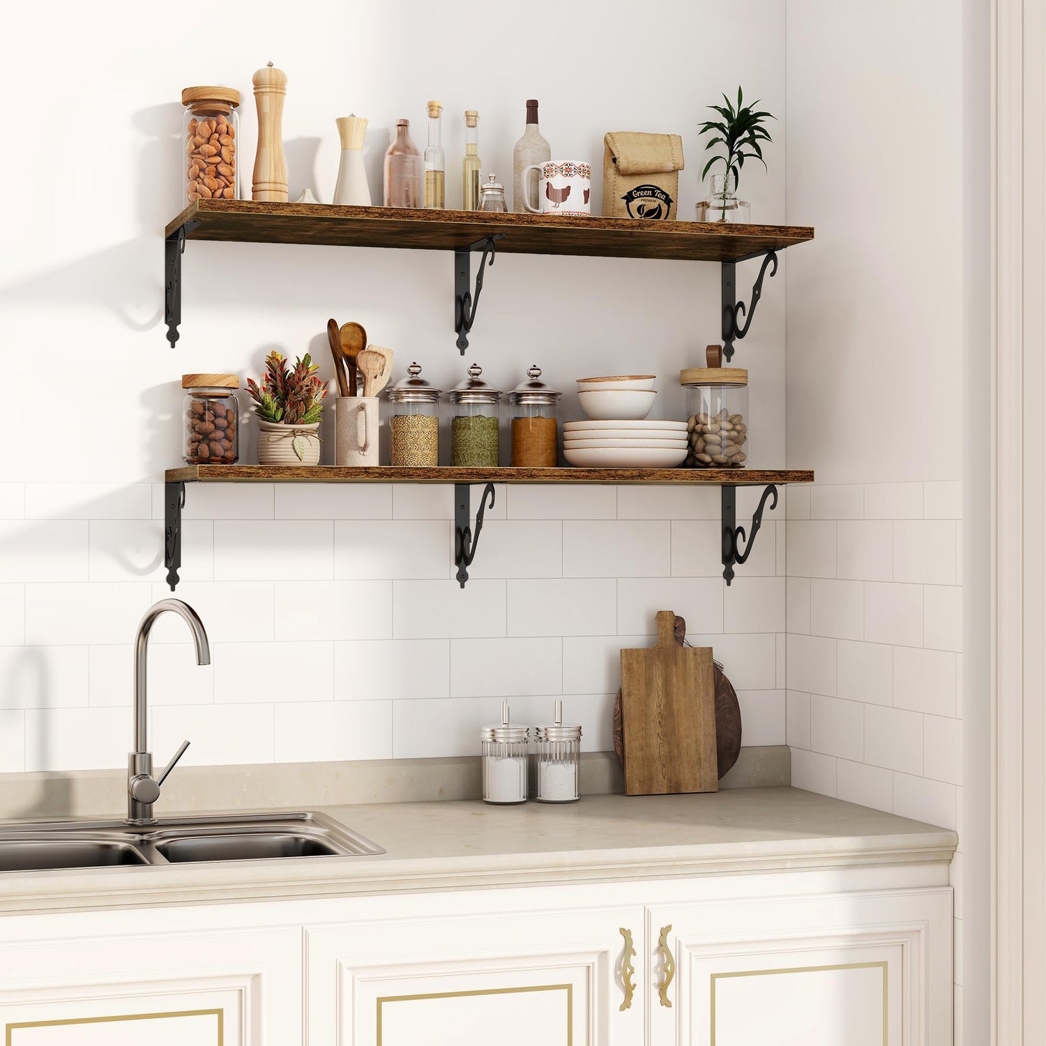Fun Memories 40 Inch Floating Shelves Wall Mounted, 12 Inch Deep Wall Shelves with Bracket, Rustic Hanging Bookshelf, 40" Bookshelves for for Living Room, Kitchen and Bedroom, Rustic Brown, Set of 2