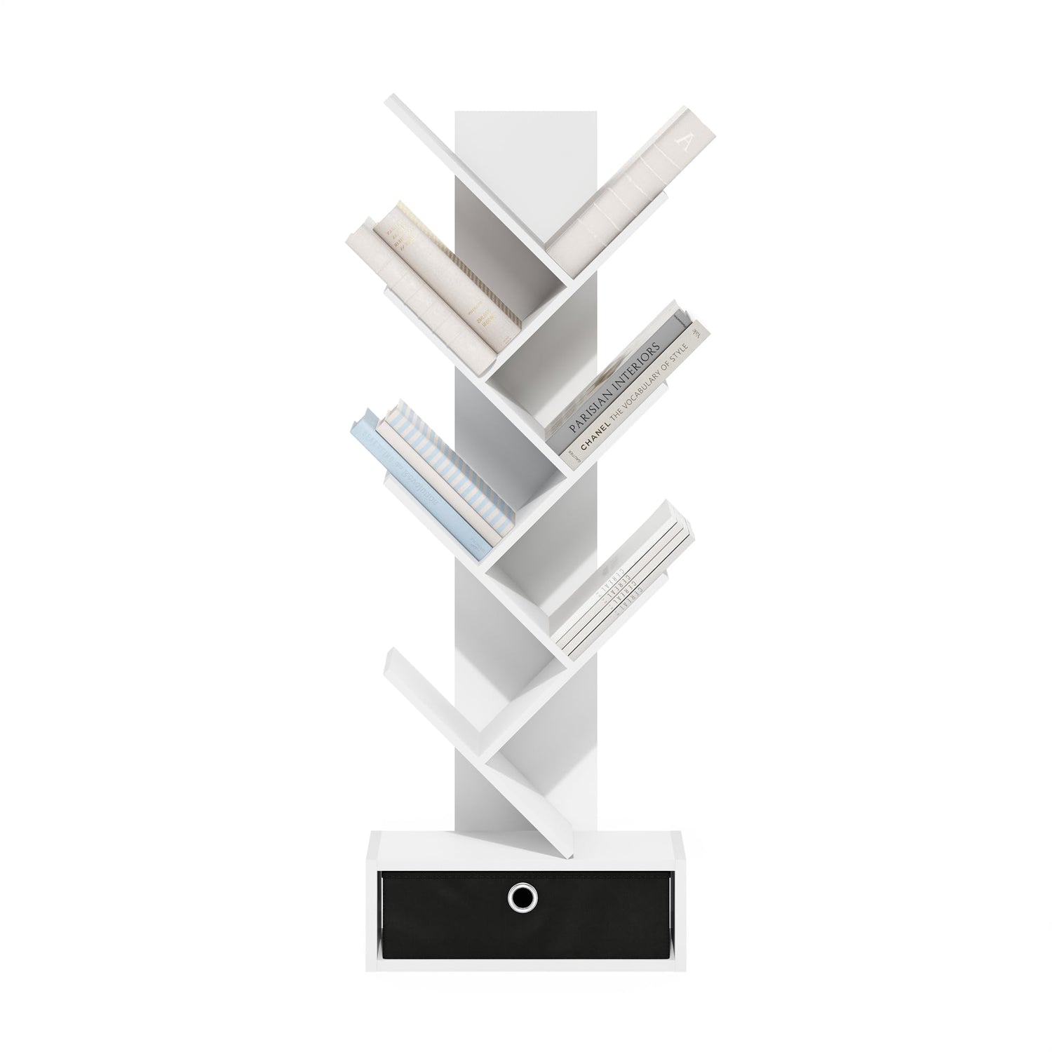 Furinno Tree Book Shelf, 7-Tier Bookshelf, Tree Bookcase with Bin Drawer, 8.4 x 16.9 x 46.2, for Living Room, Bedroom, Home Office, White/Black