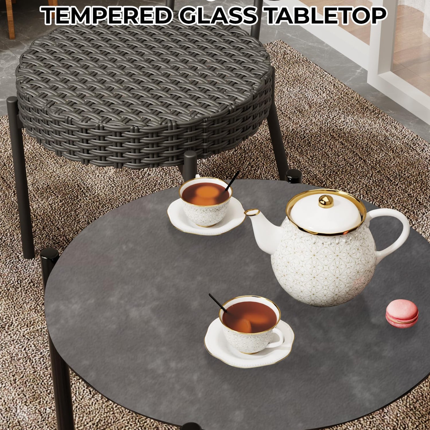 - Natural Patterned Glass Table: The included side table perfectly complements your patio wicker chairs with a clear tempered glass top that gleams beautifully and is easy to clean. It's sturdy enough to hold food, drinks, books, or decor, making it both a decorative and practical centerpiece for your outdoor gathering