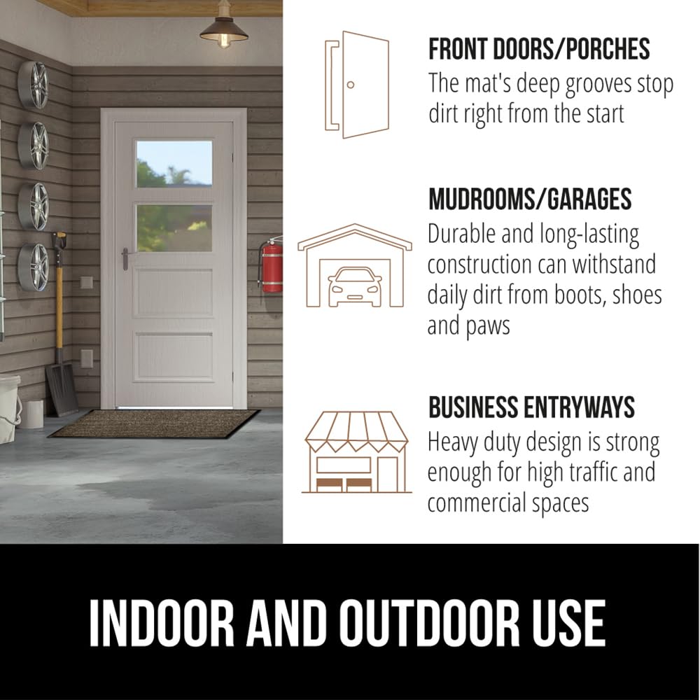 GORILLA GRIP Traffic Guard Door Mat, 72x48, Heavy Duty Welcome Mats, Commercial Office Space Doormat, Waterproof, Fade Resistant, Strong Rubber Backing, Low Profile, Shoe and Boot Scraper, Brown