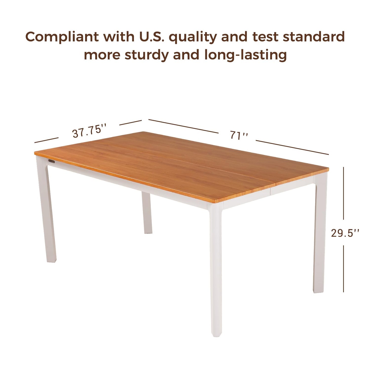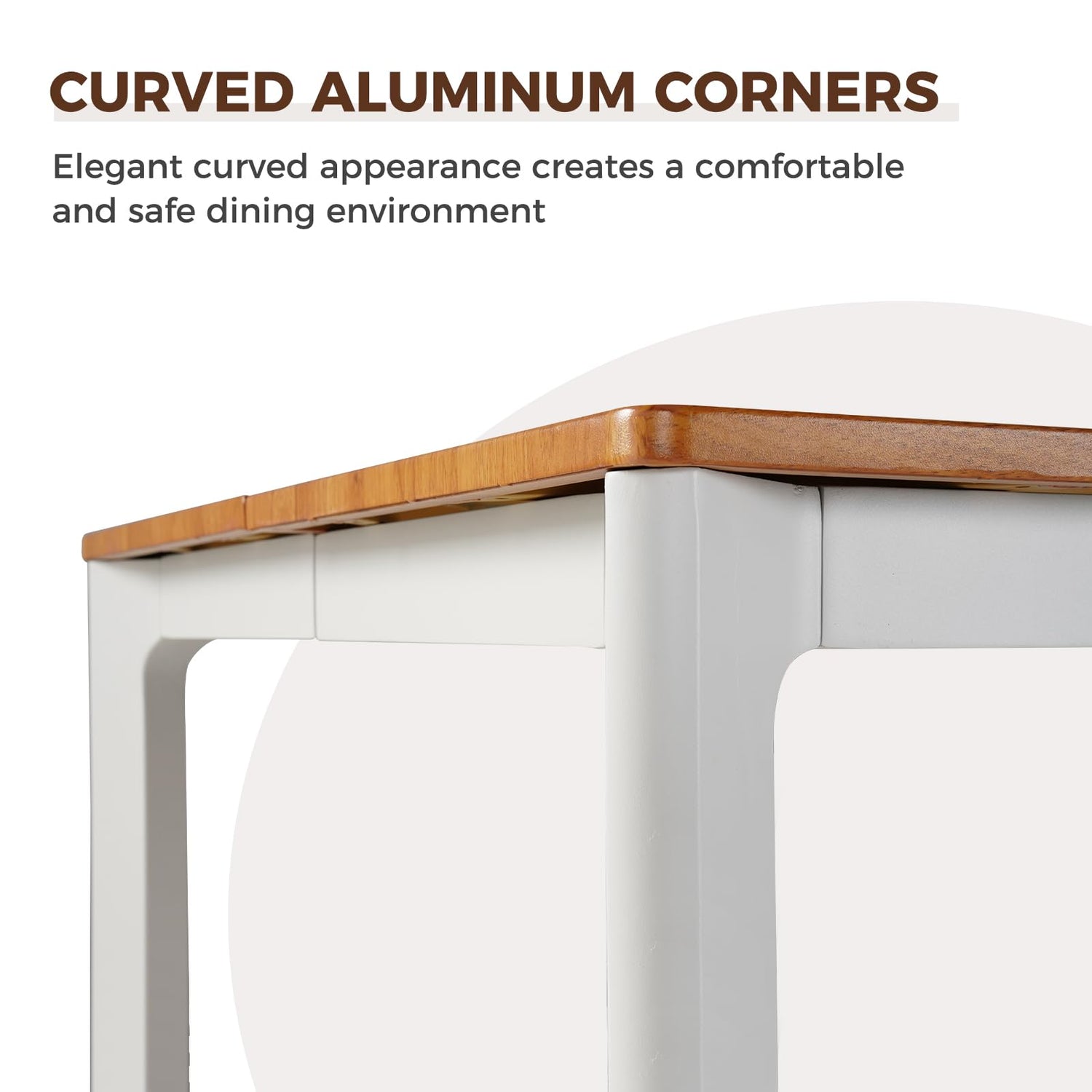 - Multipurpose Dining Table: Using 1500 UVH ultra-weather-resistant transfer printing process, it presents the appearance and texture of solid wood, bringing brightness and beauty all year round. And Clever use of aluminum casting angle technology to give the table legs and dining table an elegant curved appearance, creating a comfortable and safe dining environment