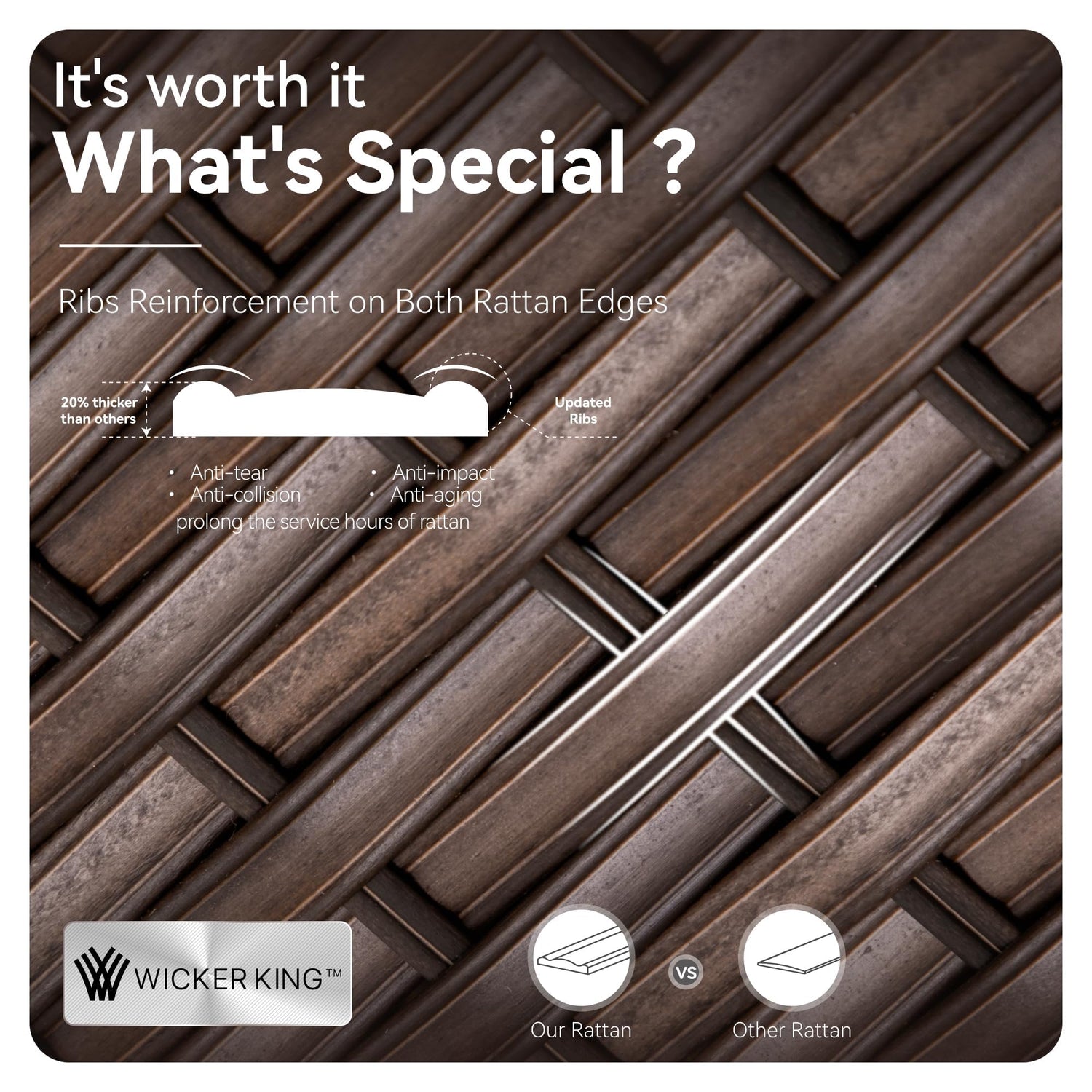- 【Durable Rattan & Sturdy Construction】The patio conversation set features high-quality handwoven PE rattan. Reinforced ribs along both rattan edges enhance durability, making it suitable for different weather conditions. The sturdy metal frame effectively improves weight capacity. Natural wood-like handrails and sofa legs provide excellent support, ensuring long-term use.