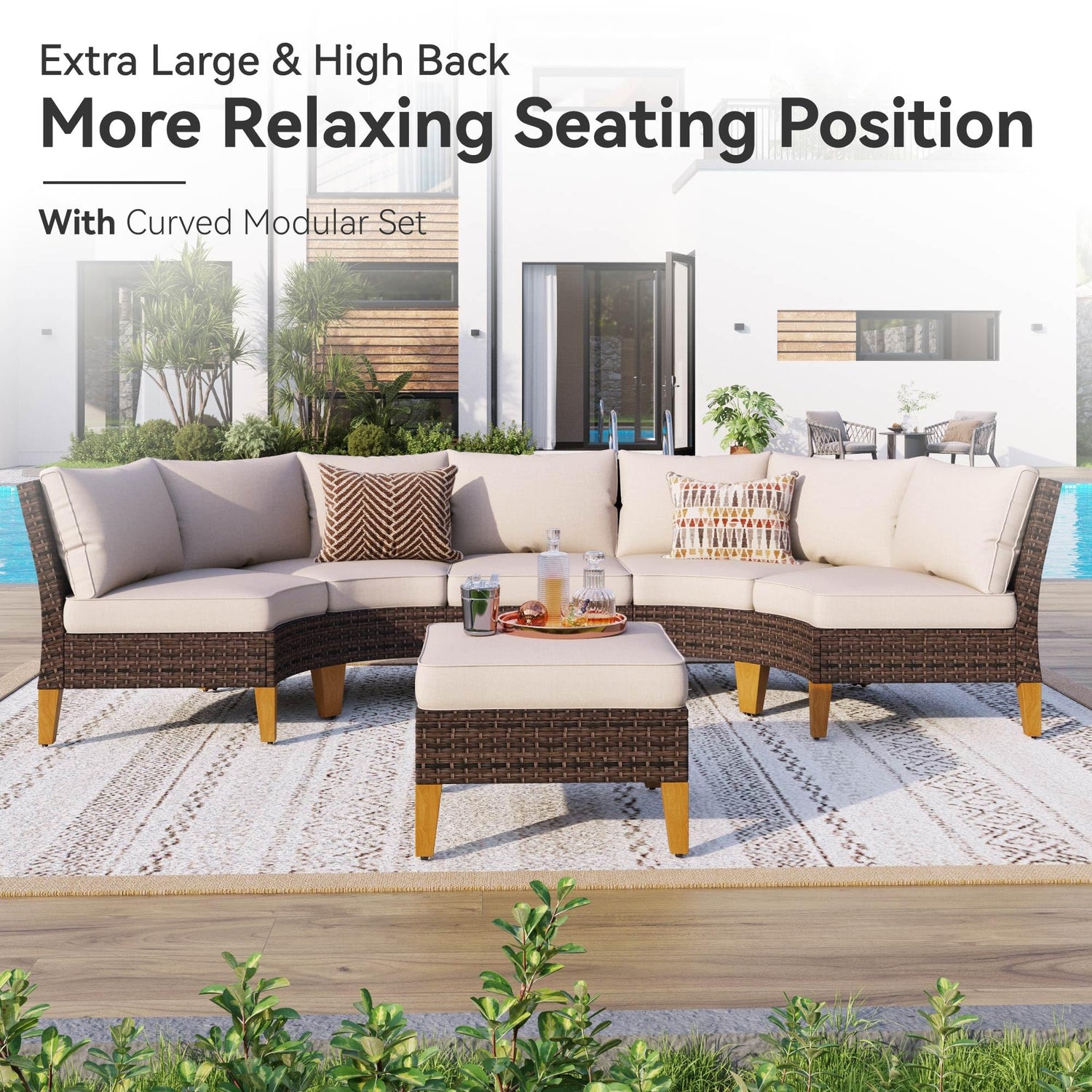 - 【Unique Half Moon Curved Design】Elevate your outdoor living space with this innovative patio furniture set featuring half-moon curved sofa combinations. The stylish design adds glamour to your surroundings. The curved shape creates a cozy and intimate seating area, perfect for entertaining guests or relaxing with loved ones. Whether it’s outdoor gatherings or simply soaking up the sun, this set has you covered.
