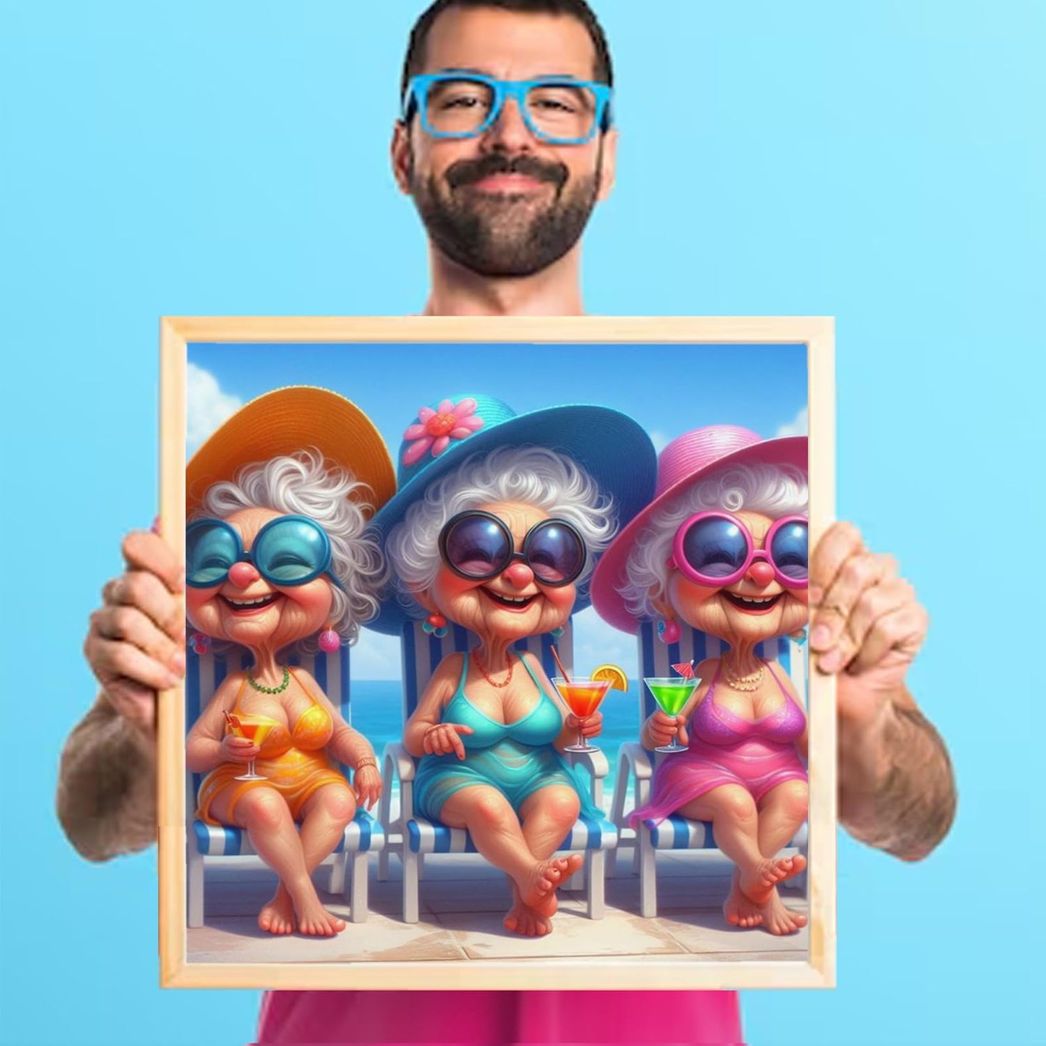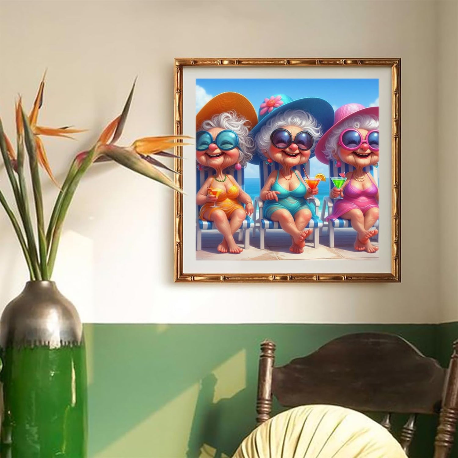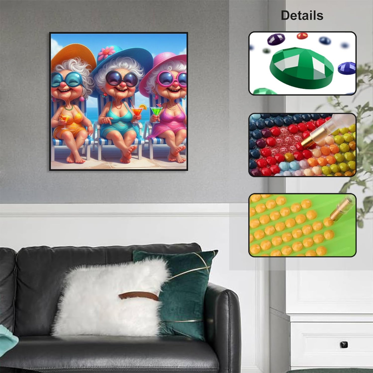 GUMITOON Old Ladies Diamond Art Kits for Adults-Full Drill Diamond Dots Paintings for Beginners, Round 5D Paint with Diamonds Pictures Gem Art Painting Kits DIY Crafts Kits 14"x14" QCY-114