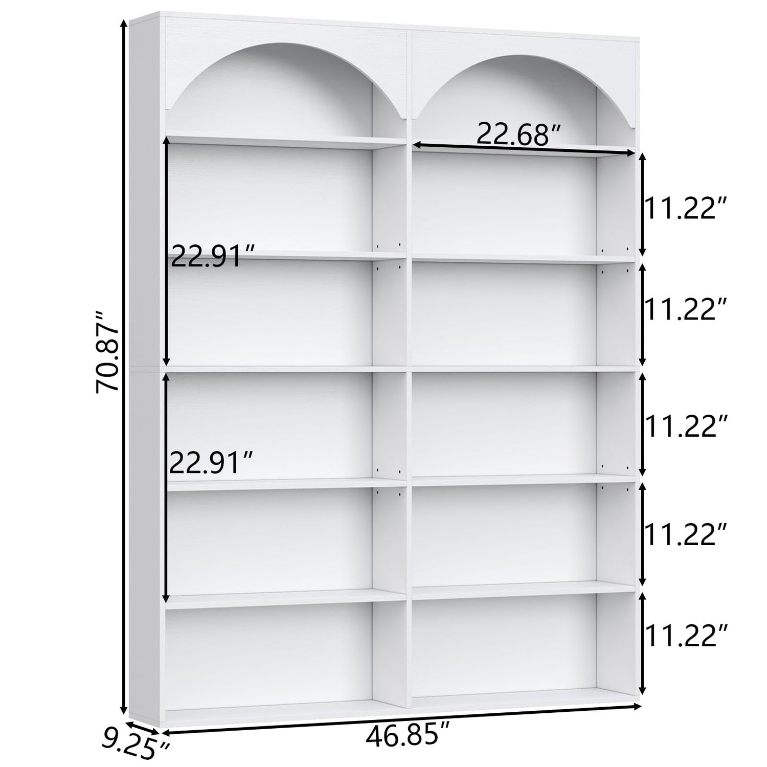 - [12 Shelves Open Storage Space] With double-wide layout, this modern bookcase have 12 open shelves and twice the width of a standard bookcase, which maximizes wall space, making it ideal for large rooms, open-plan offices, or as a room divider. The interior shelf height is up to 11.2" which allow it can easily accommodate tall books, souvenirs or storage boxes. Effortlessly have a small library with this 70.8" wide bookshelf.