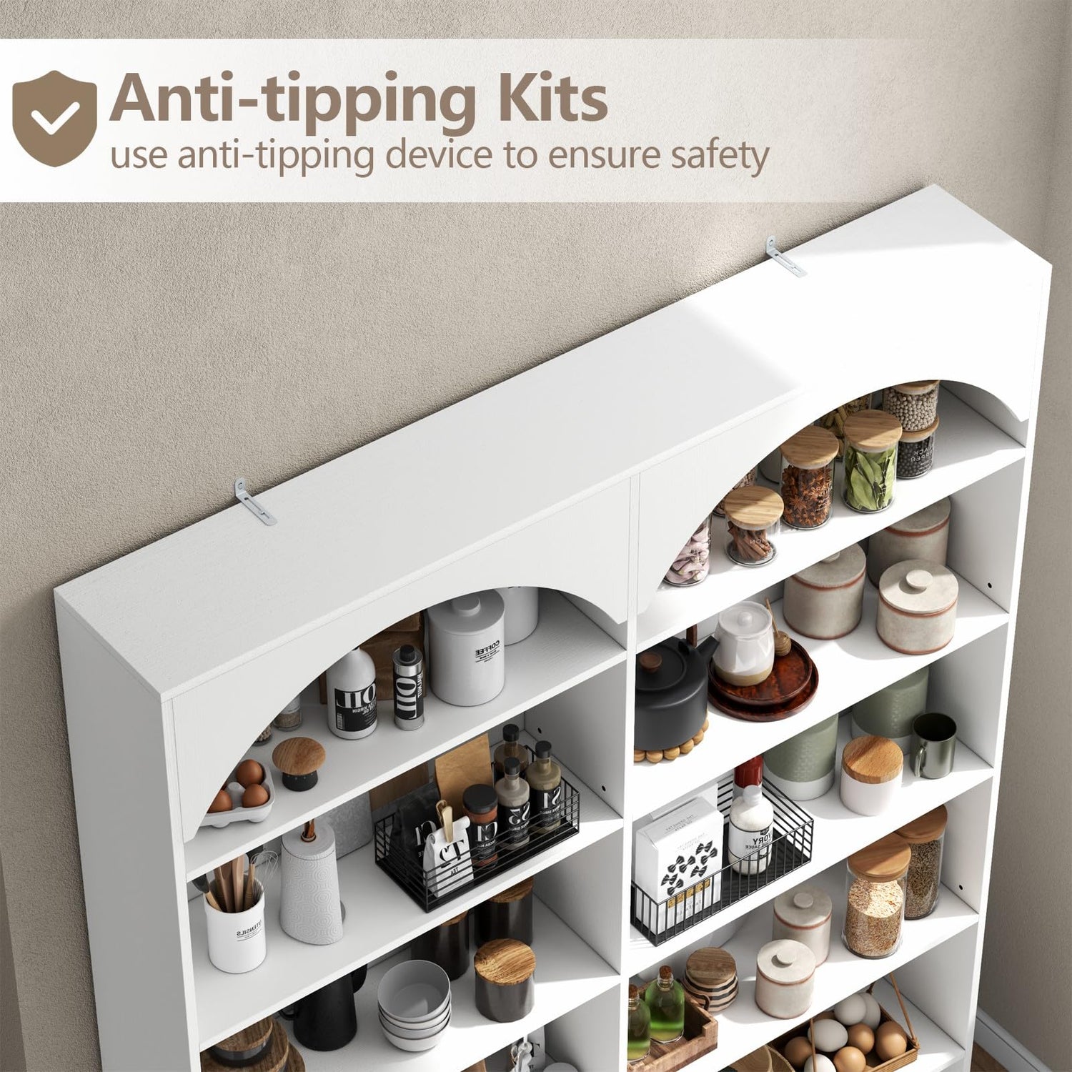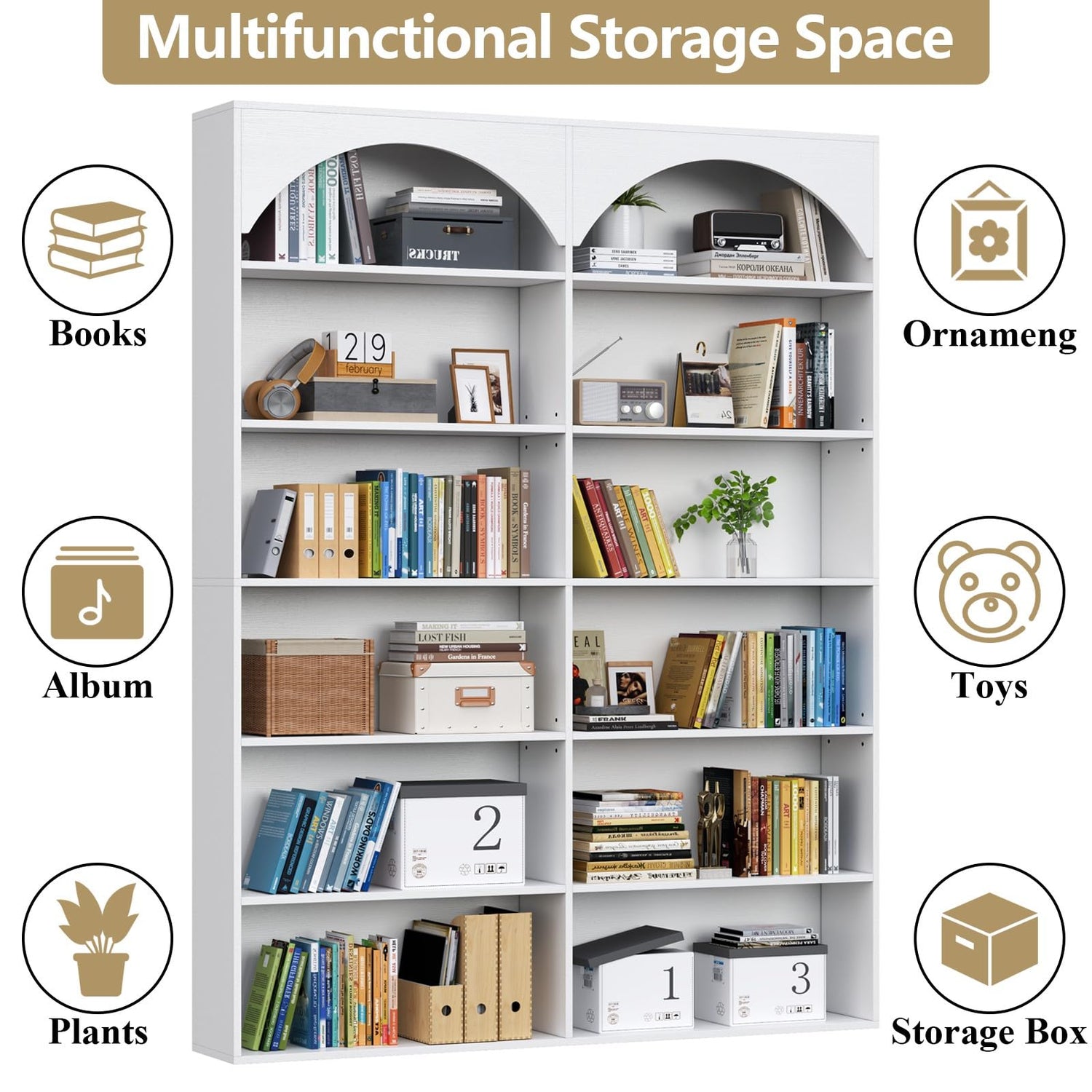 Gyfimoie 70.8’’ Tall Bookshelf and Bookcase, 7-Tier Double Wide Bookcase Modern Large Open Display Shelves with Curved Baffle for Home Office Living Room (White)